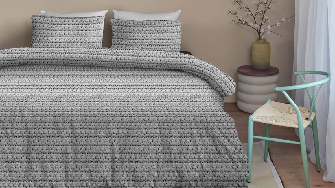 Ben jij op zoek naar een sfeervol dekbedovertrek? Dan is het Blushwood Joa dekbedovertrek echt iets voor jou. Het grijze dessin bevat een breipatroon waaronder je heerlijk ontspannen in slaap kunt vallen.