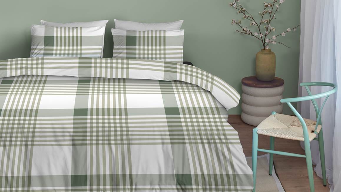 Voor een klassieke look in de slaapkamer is het Marco dekbedovertrek van Blushwood een echte must-have. Op het witte overtrek staat een klassieke ruitenprint bestaande uit groene strepen. Hierdoor oogt het ontwerp erg fris en stijlvol.