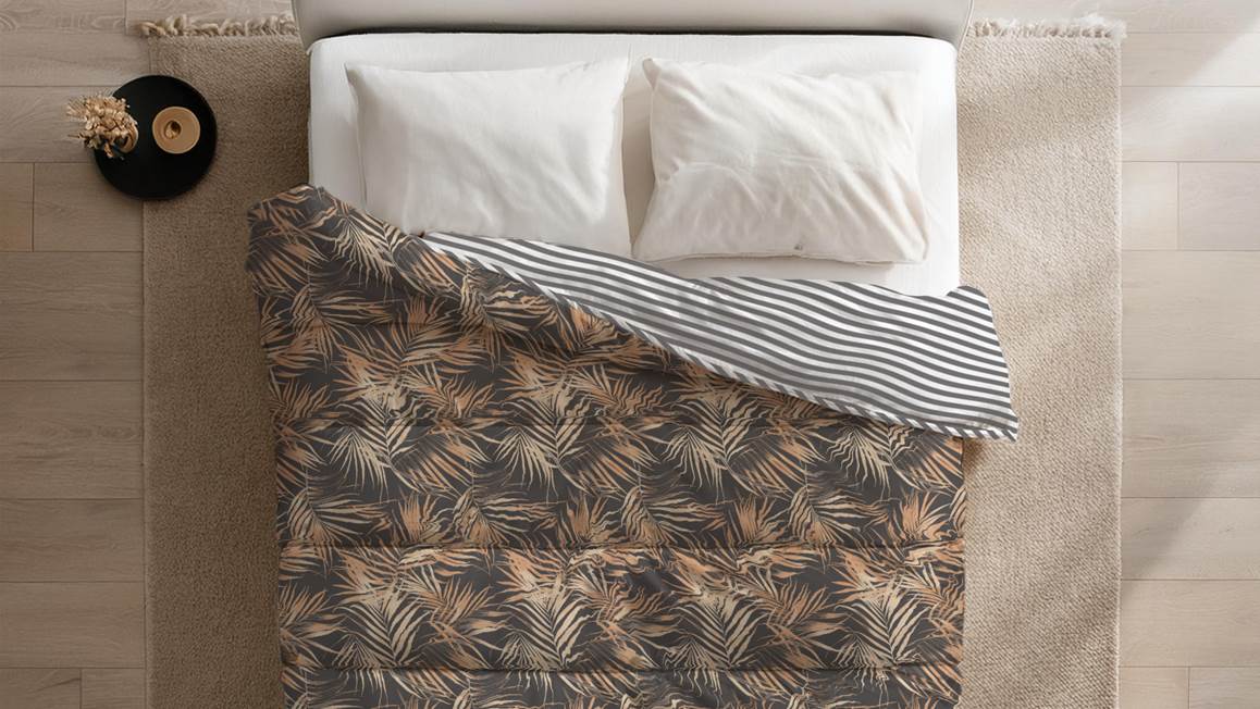 Het Zydante Easy dekbed is ideaal voor op bed. Een wasbaar dekbed met bladeren print in oranje bronstinten op een donkere ondergrond. De achterzijde heeft een basic streeppatroon, dus het is ook mogelijk om het wasbare dekbed eens om te draaien voor een andere look.