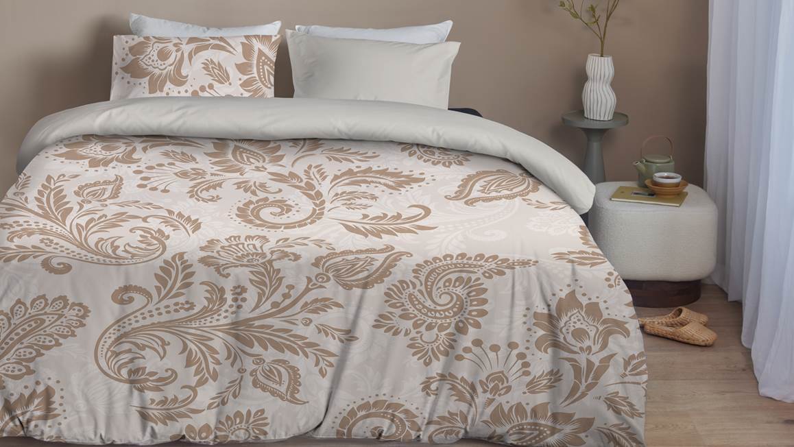 Met het Blushwood Annalie dekbedovertrek geef je jouw slaapkamer een stijlvolle toevoeging. Het zandkleurige dessin heeft een bladerprint in het wit en bruin. De achterzijde is effen van kleur. De bijbehorende kussenslopen bevatten beide prints zodat je leuk kunt combineren.