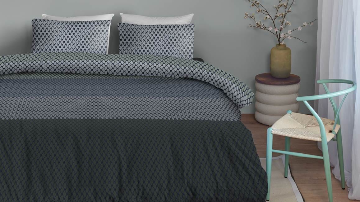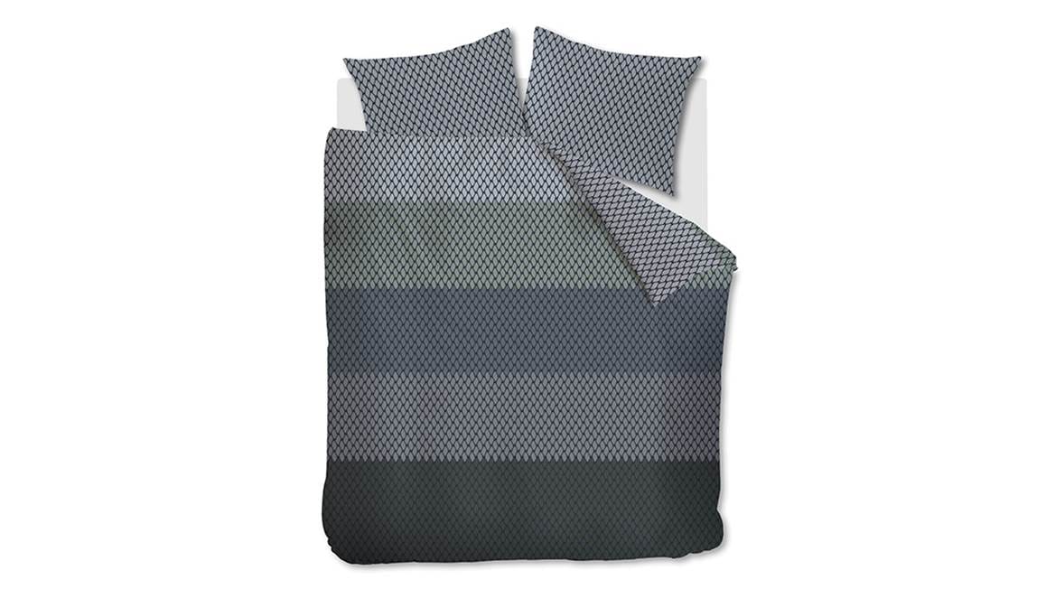Het Blushwood Berry dekbedovertrek is een sfeervolle verschijning. Diverse blauwtinten komen samen in het ontwerp door middel van de horizontale banen. Voor een speels effect is er een subtiel geometrisch patroon toegevoegd.