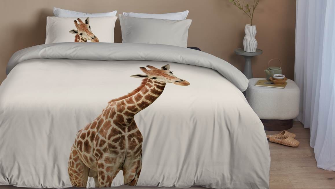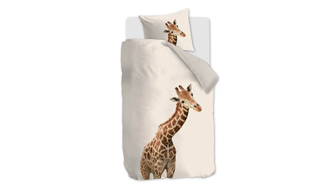 Met het Gira dekbedovertrek van het merk Blushwood sta je iedere dag op met een glimlach. De giraffe kijkt je op een grappige manier aan en door de zandkleurige ondergrond oogt het ontwerp sereen. Zowel de kussenslopen als het overtrek bevatten een effen achterzijde. Mix en Match erop los.