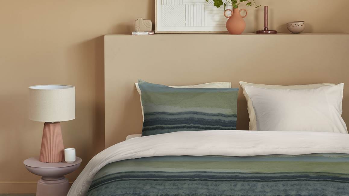 Het Blushwood Luna dekbedovertrek heeft een donkere, indringende print. Een mooie toevoeging voor op bed! Het kleurenpalet bestaat uit verschillende tinten groen, blauw en grijs. Het dessin sluit goed aan binnen een industrieel of modern slaapkamerinterieur.