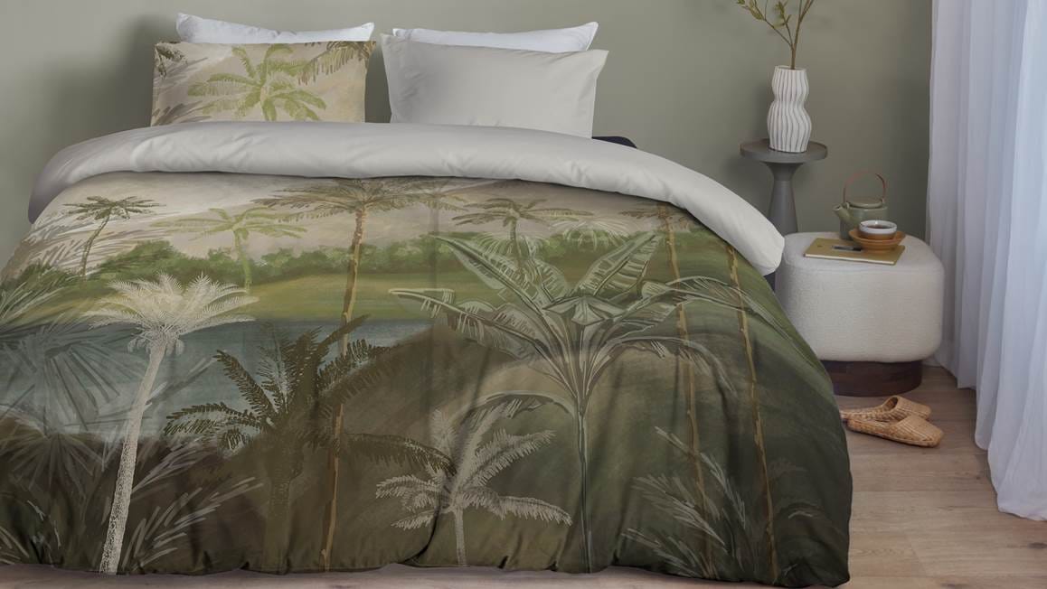 Met het Blushwood Zain dekbedovertrek haal je een echte eyecatcher in huis. De print bestaat uit een jungle waarop je een beekje ziet stromen en in de verte staan twee bergen. Zo is het net alsof je zelf op vakantie bent. Sla het overtrek een stukje om en tover de effen achterzijde tevoorschijn.