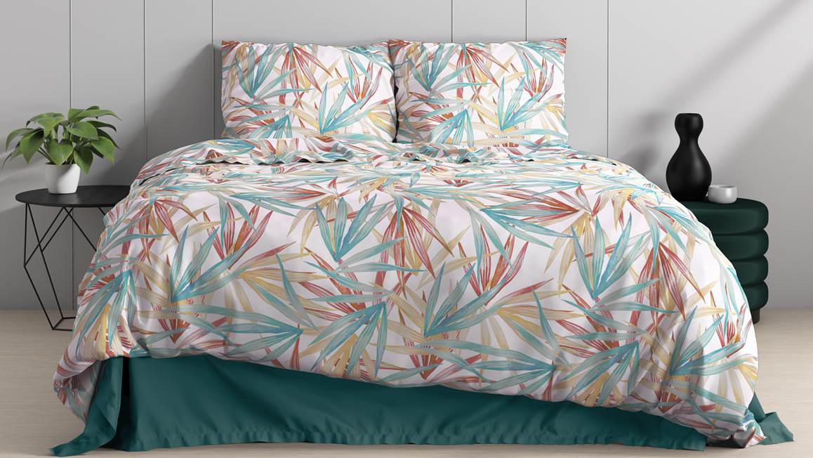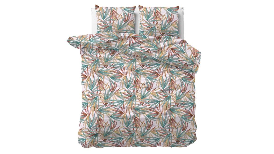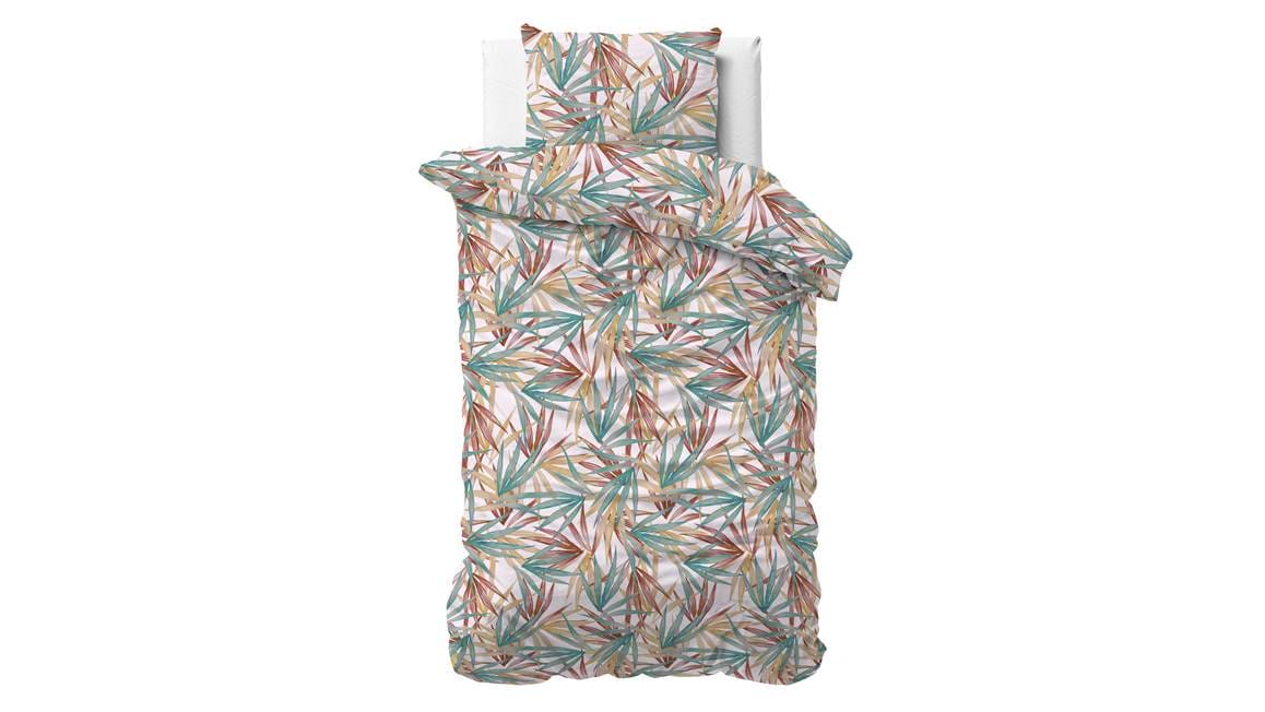 Met het Dreamhouse Aster dekbedovertrek geef je jouw slaapkamer een frisse en kleurrijke uitstraling. Op het dessin staan bladeren in blauwe, gele en rode tinten die mooi uitkomen op de witte ondergrond. Zo val je iedere avond heerlijk ontspannen in slaap.