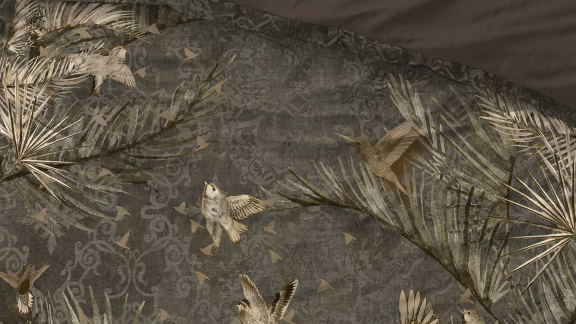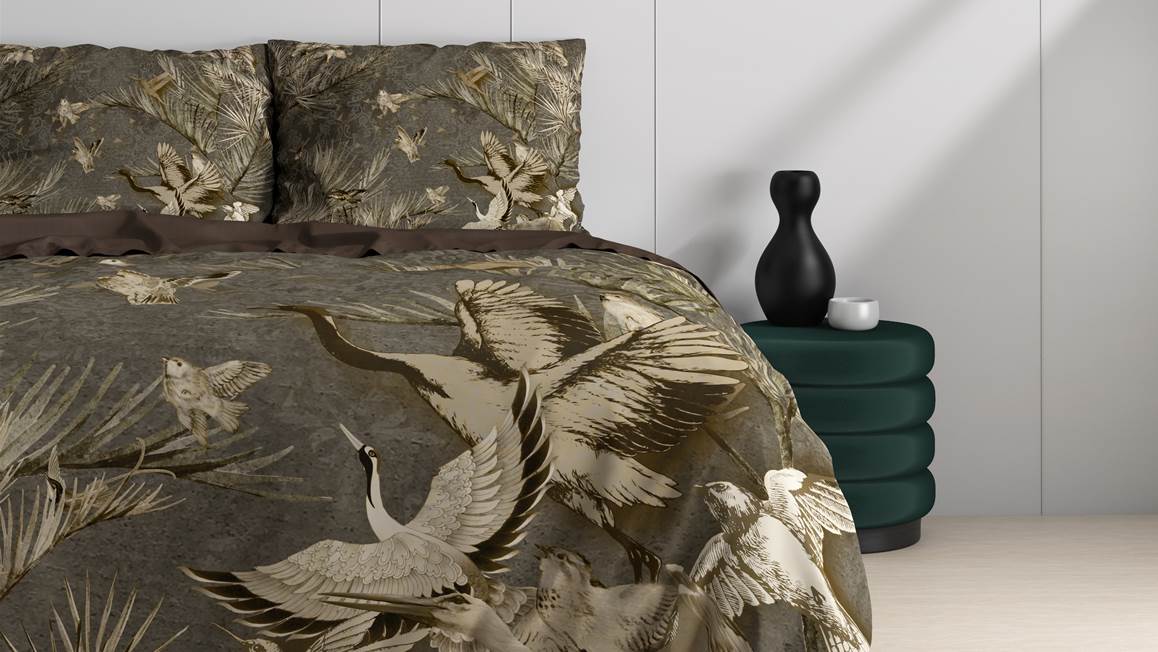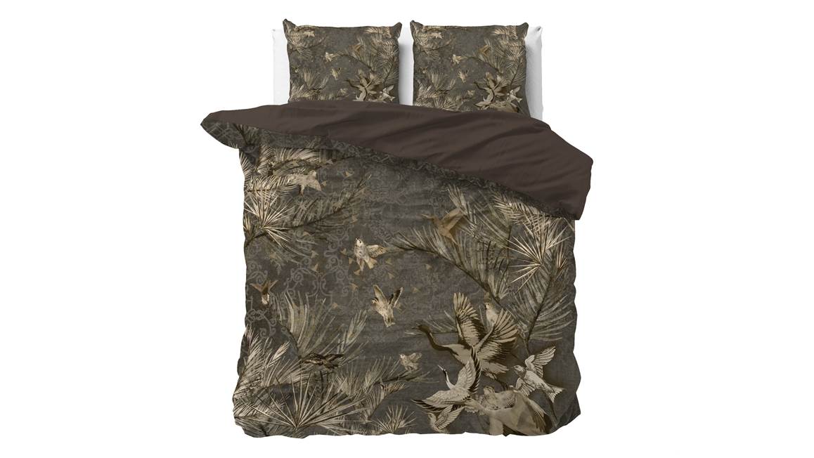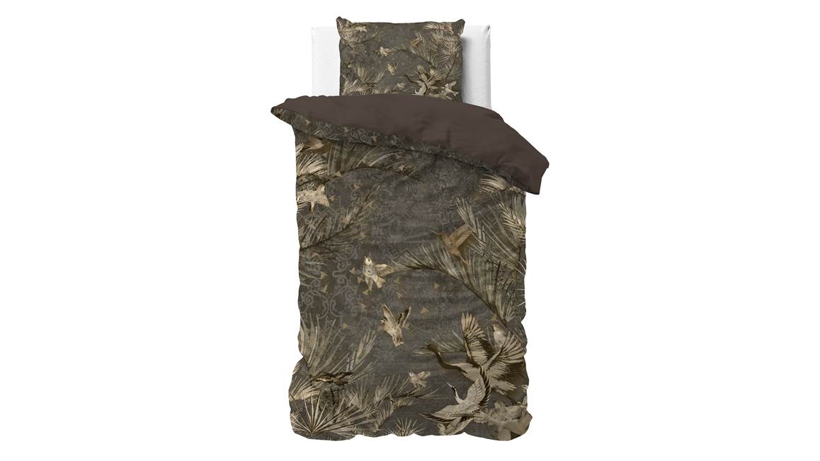 Het Aurelien dekbedovertrek zorgt voor een stijlvolle uitstraling dankzij het taupekleurige dessin. Met een gedetailleerd patroon op de achtergrond komen de sierlijke planten en vogels goed naar voren. De achterzijde is effen bruin