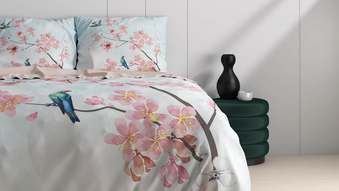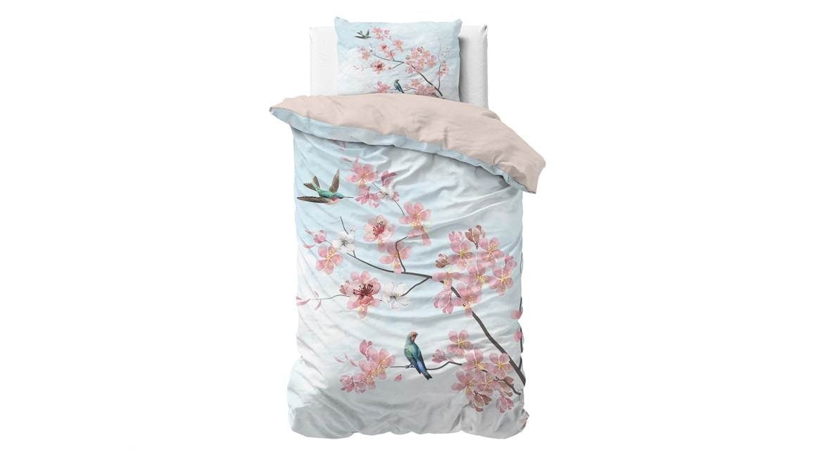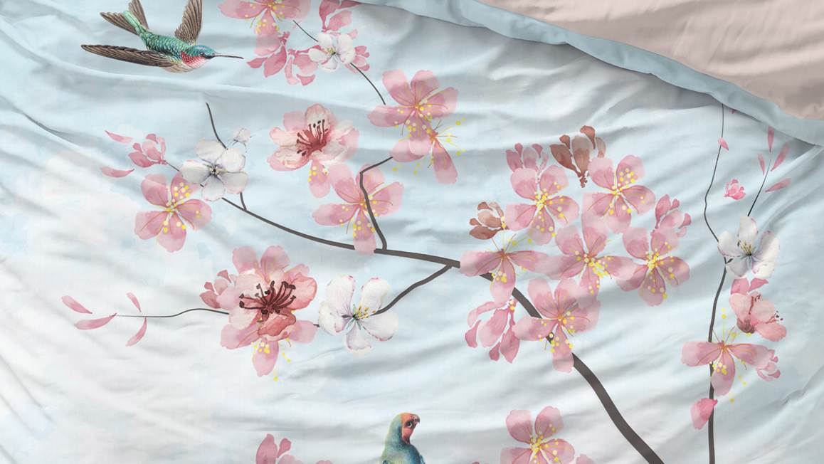 Haal het voorjaar naar de slaapkamer met het Layla dekbedovertrek. Het lichtblauwe dessin is voorzien van een print van sierlijke witte en roze bloemen aan takjes voor een heerlijk lentegevoel. Op de print zie je ook verschillende vogels.