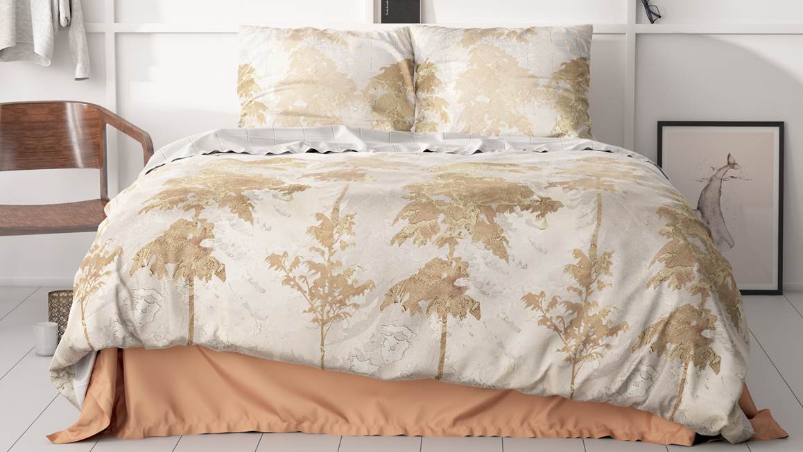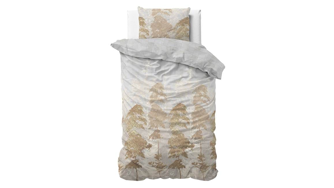 Droom iedere avond heerlijk weg onder het Dreamhouse Riffo dekbedovertrek. Op het grijzige dessin staan gouden bomen. Het ontwerp oogt door de lichte ondergrond fris en dankzij de gouden accenten erg chic. Je combineert het overtrek hierdoor in diverse interieurstijlen.