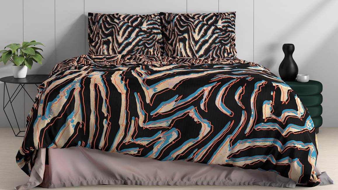 Geef jouw slaapkamer een stijlvolle touch met het Dreamhouse Tansy dekbedovertrek. Op het dessin staan een print van een zebra huid. De blauwe en oranje accenten zorgen voor een kleurrijke toevoeging aan het ontwerp.