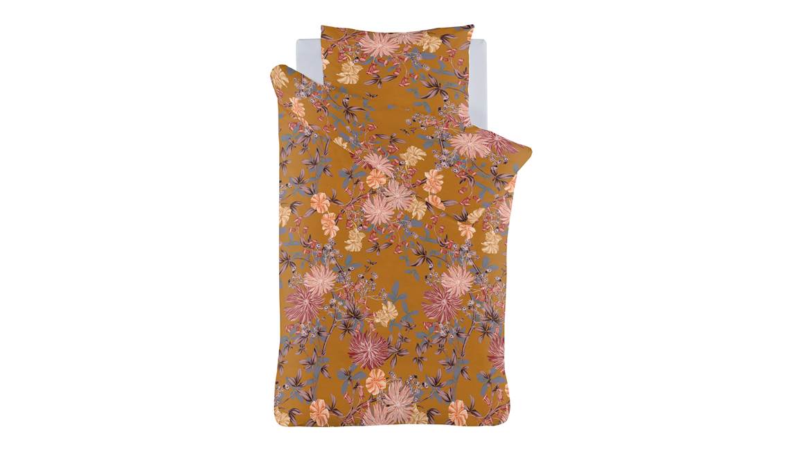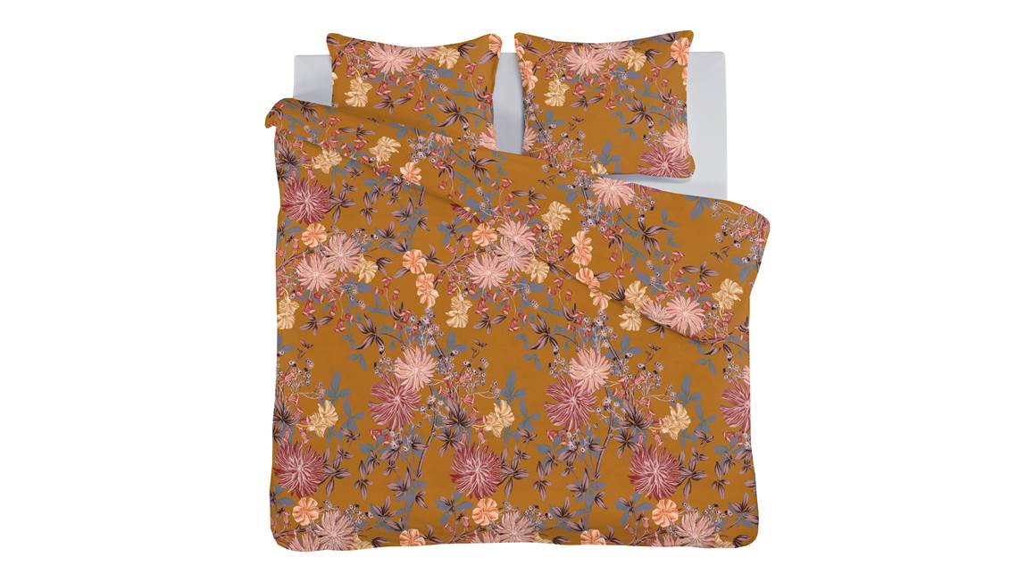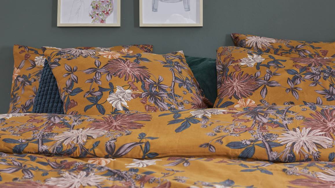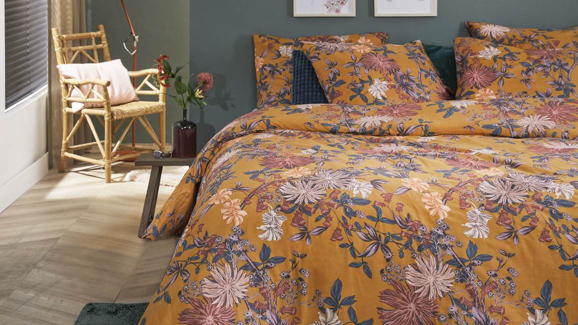 Een vrolijk en landelijk overtrek is het Farah dekbedovertrek. Het okergele dessin fleurt jouw slaapkamer in een handomdraai op met de kleurrijke bloemen en bladeren. Door de rustige kleurencombinatie straalt het overtrek warmte uit.
