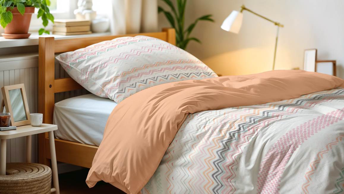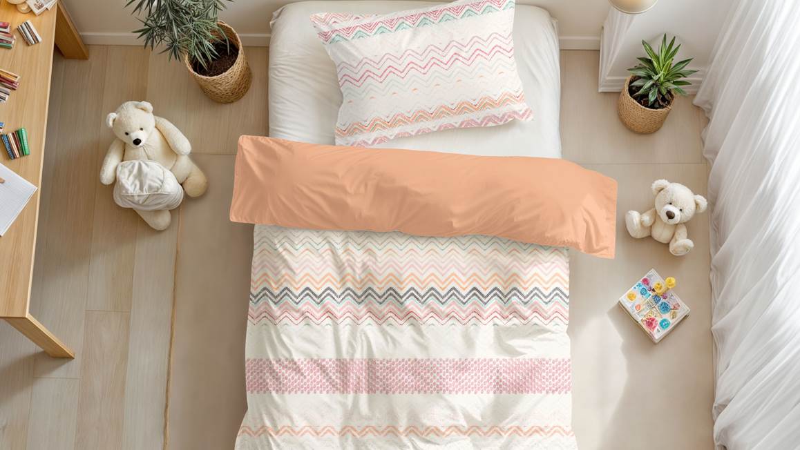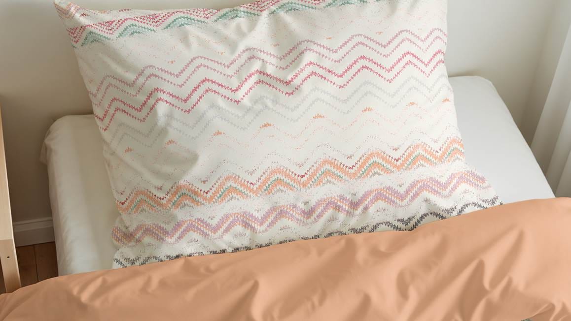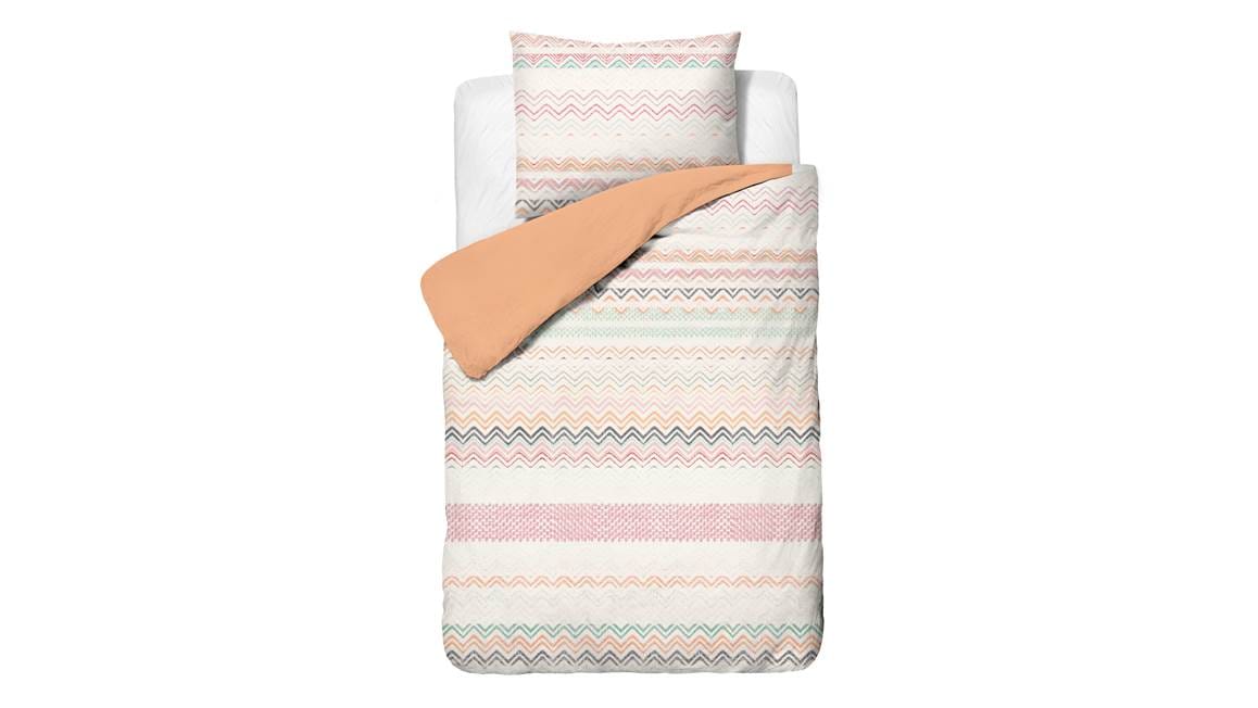 Voeg extra kleur toe aan jouw slaapkamer met het Little Monster Elaya dekbedovertrek. Op het witte overtrek staan verschillende gekleurde zigzag strepen die zorgen voor een vrolijke en speelse look. De achterzijde is effen oranje.