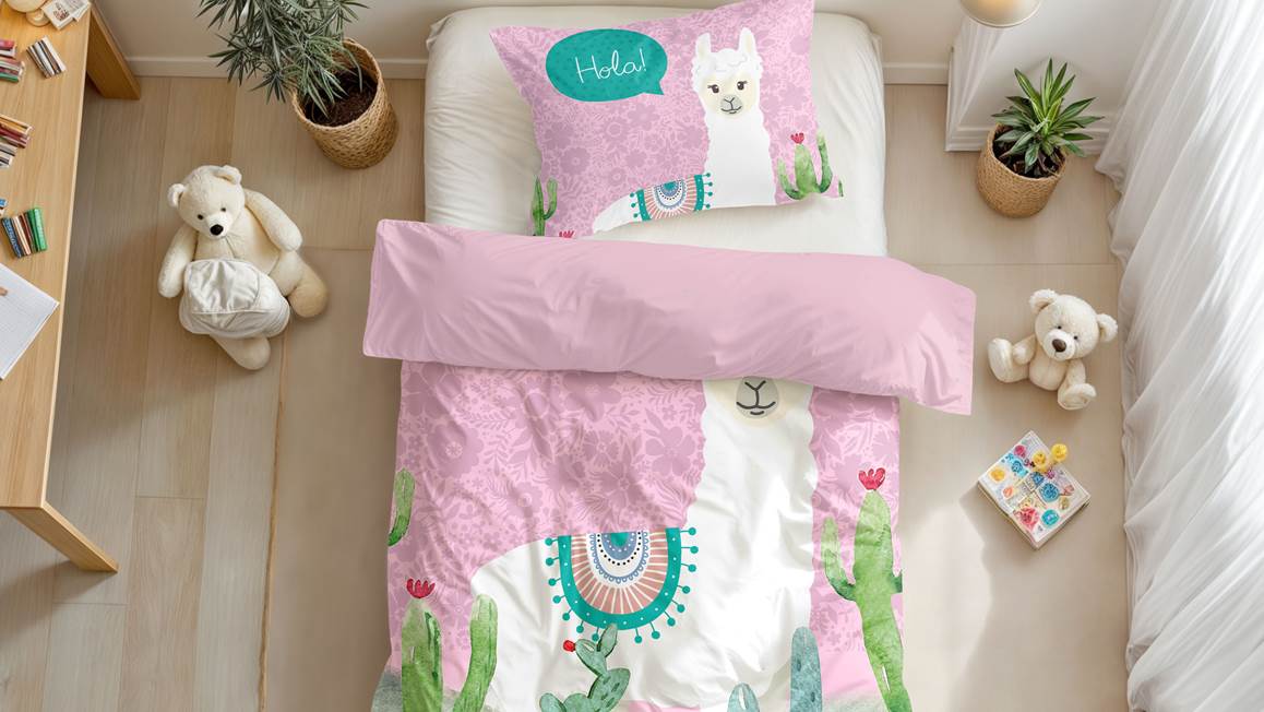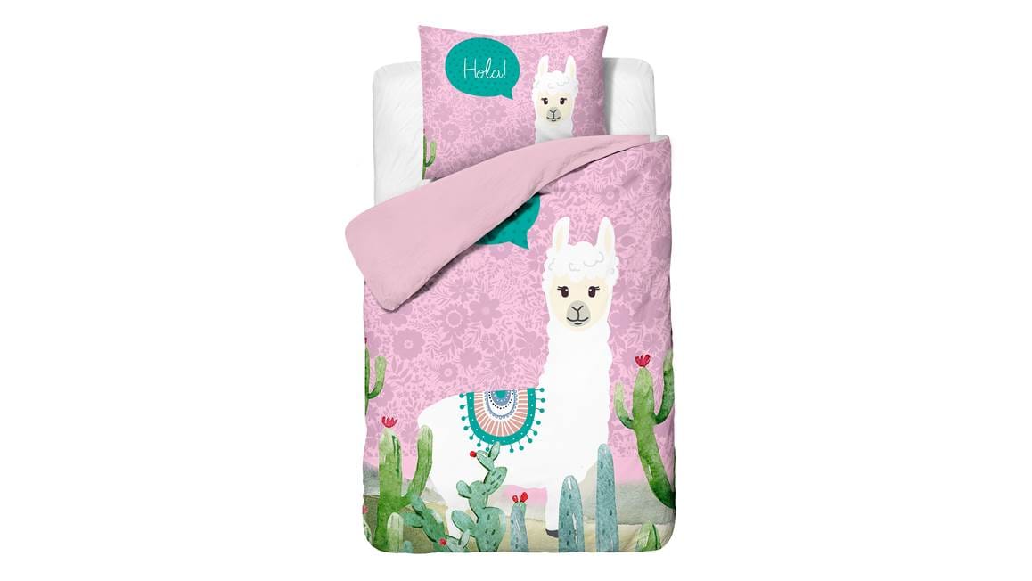 Ben jij ook zo’n dierenliefhebber? Dan kan het Hola Lama dekbedovertrek van Little Monster niet ontbreken in jouw slaapkamer. Op het roze overtrek staat een grote witte lama tussen de cactussen. De achterkant is effen roze.