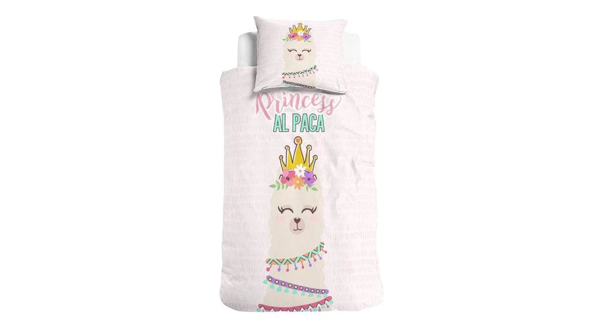 Val iedere avond als een echte prinses in slaap met het Little Monster Princess Al Paca. De alpaca heeft prachtige kettingen omgedaan en het kroontje maak de prinsessen look compleet. De achterkant van het overtrek is roze van kleur.