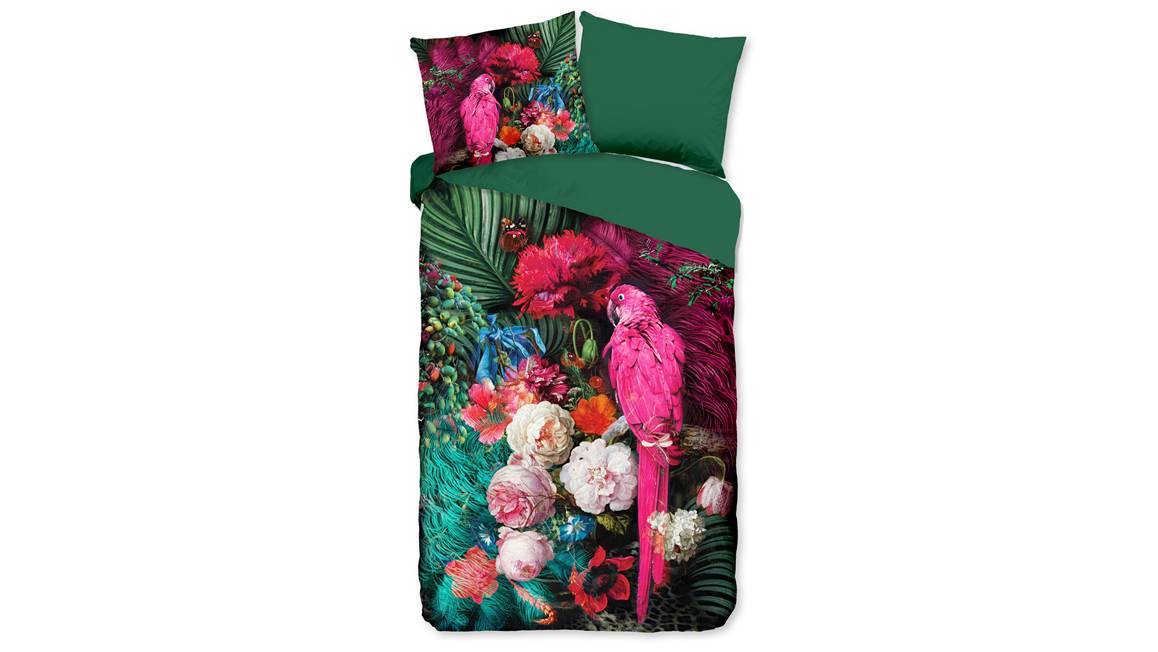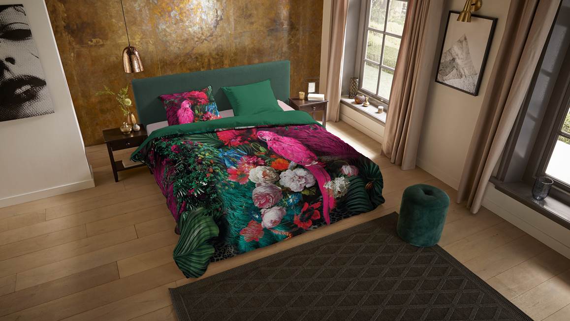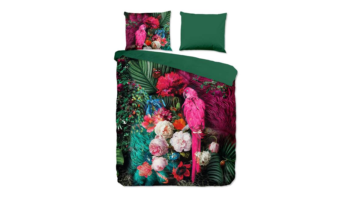 Geef je slaapkamer een tropische jungle look met het Bohem dekbedovertrek. De grote roze papegaai wordt omringd door verschillende bloemen en planten in verschillende kleuren. Dit geeft het overtrek een kleurrijke en vrolijke uitstraling.