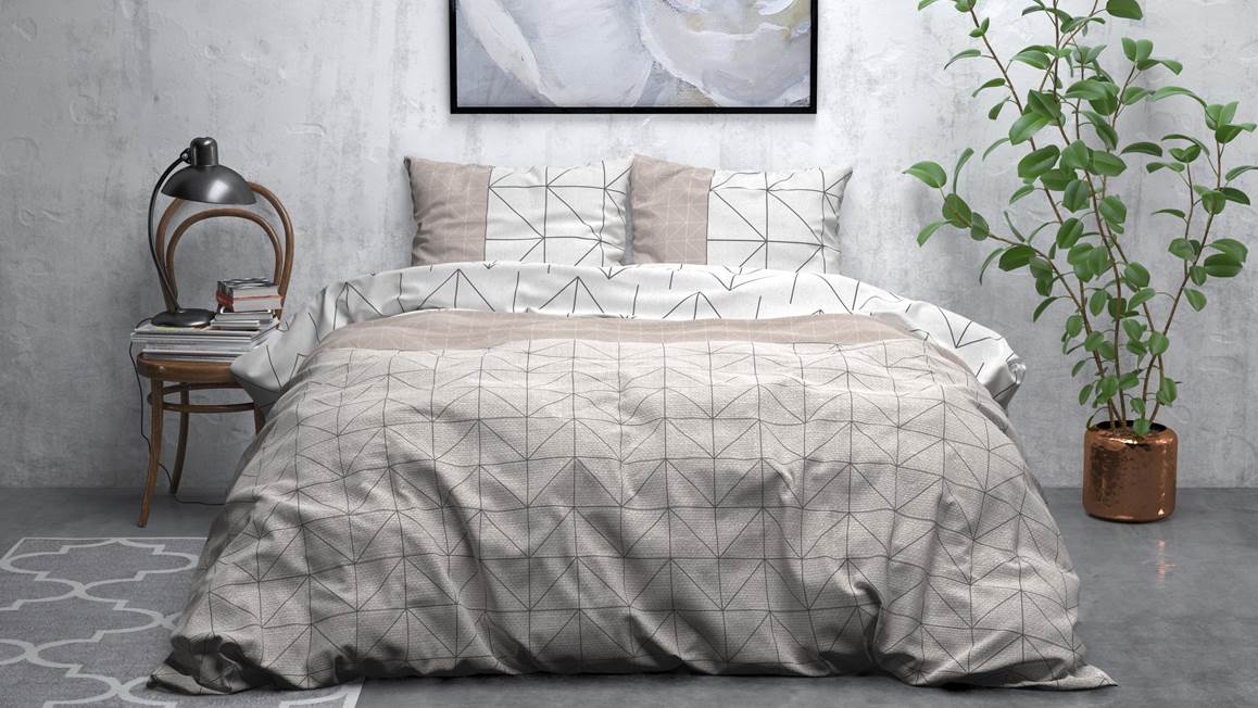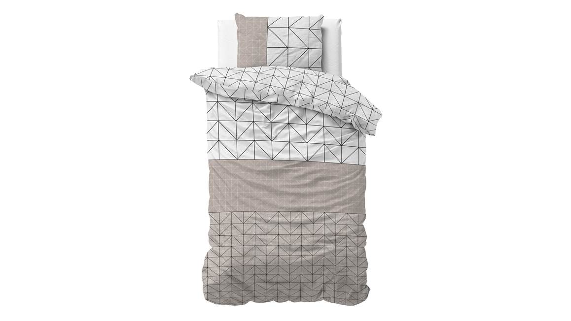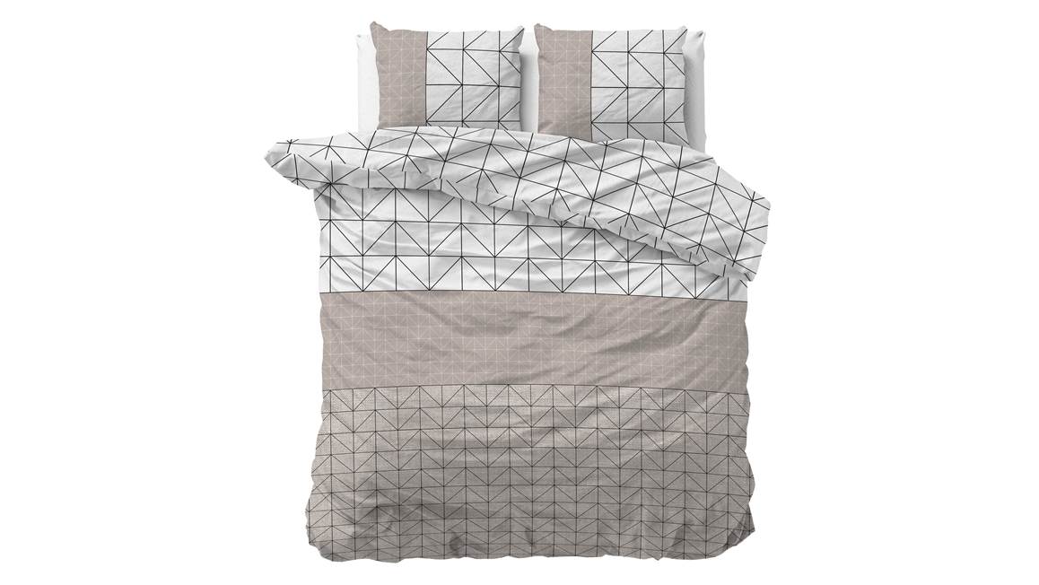 Geef jouw slaapkamer een trendy look met het Sleeptime Gino flanel dekbedovertrek! De combinatie van wit met taupe creëert een warme sfeer. De geometrische print, bestaande uit verschillende groottes, zorgen voor een strakke uitstraling.