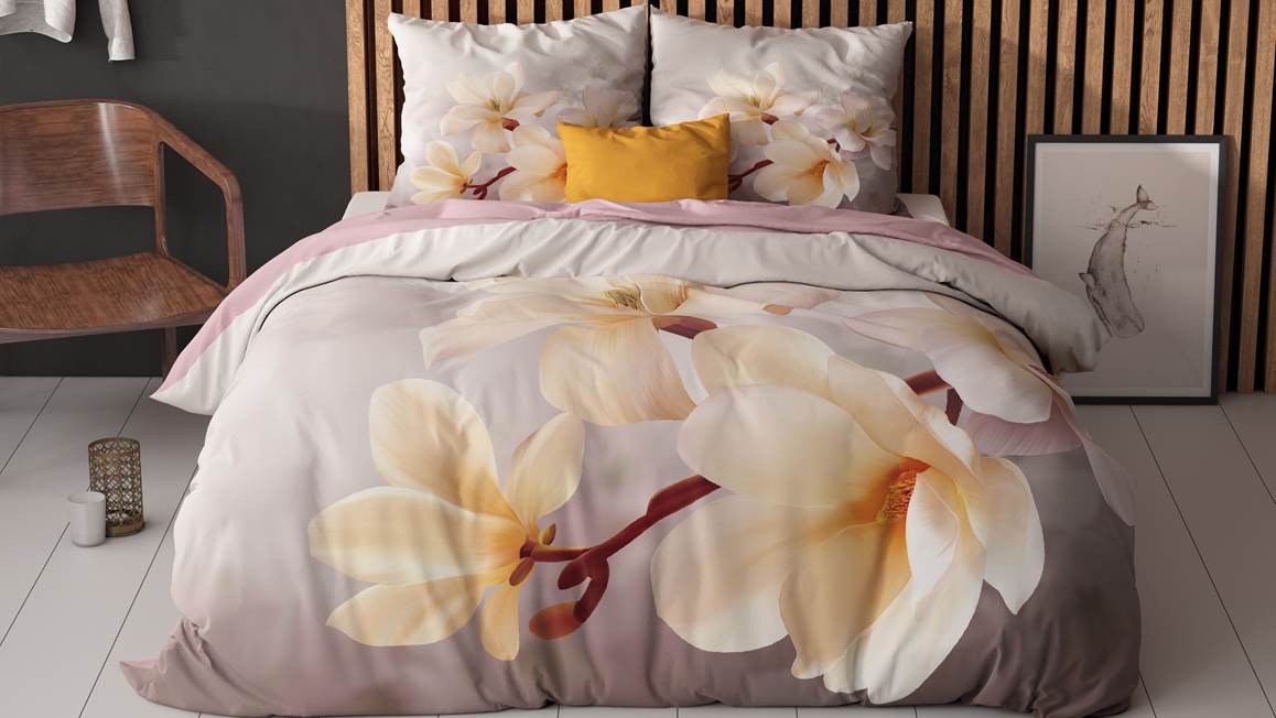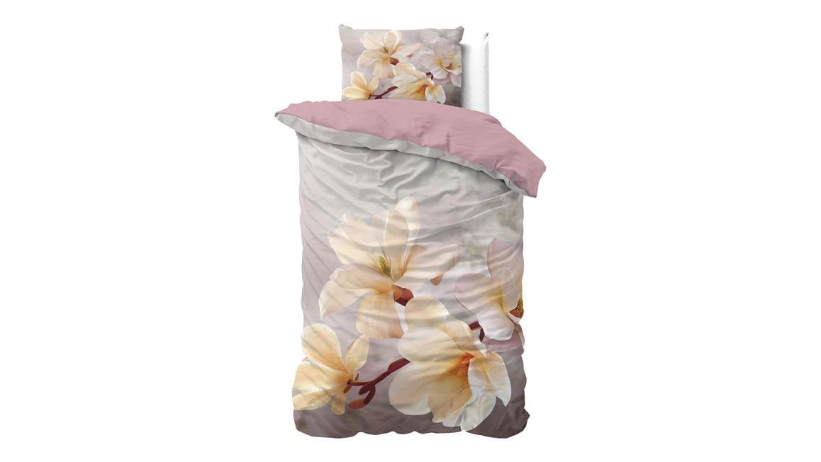 Het fleurige Sleeptime Isaline dekbedovertrek is een plaatje om te zien. Deze mooie bloemenprint laat je elke avond heerlijk tot rust komen. Op de zachte ondergrond springen de prachtige bloemen je in het oog. De achterzijde is effen roze.