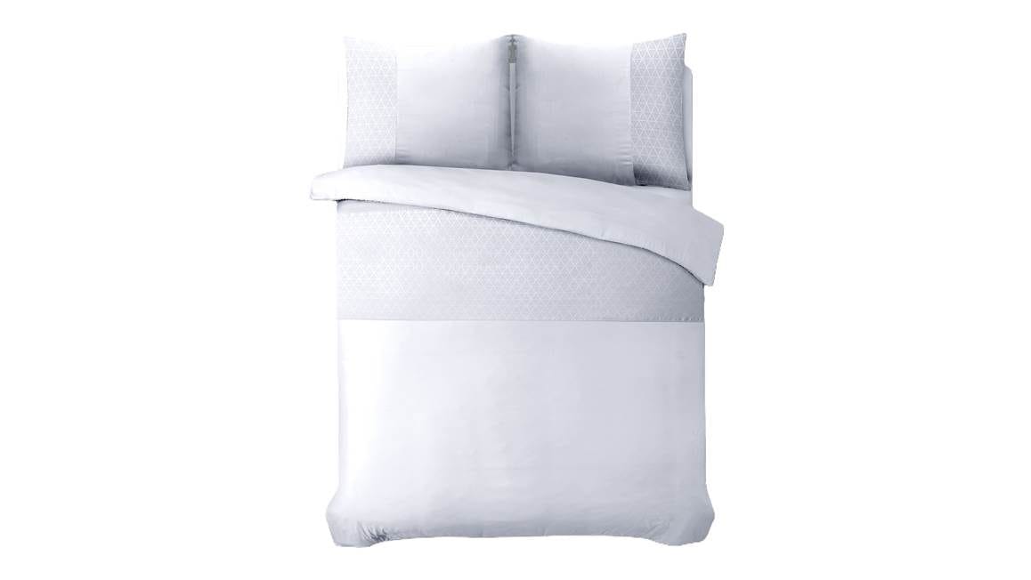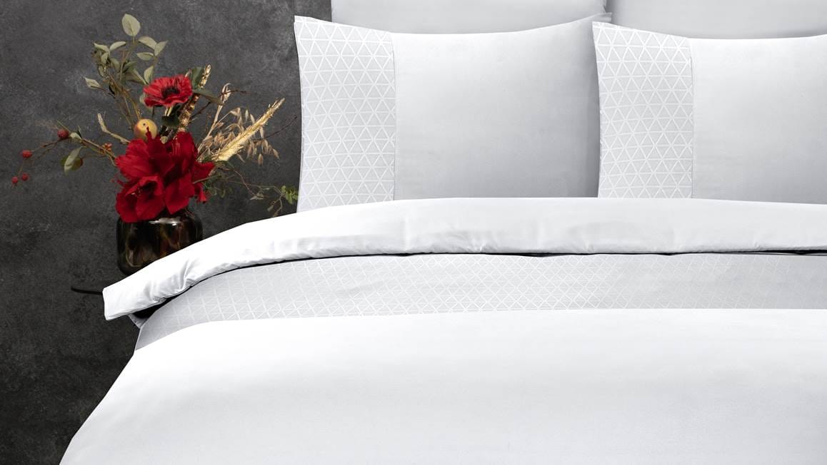Met het Sleeptime Monte Negro dekbedovertrek creëer je in een handomdraai een luxe sfeer in de slaapkamer. Het witte overtrek oogt sereen en helpt je iedere avond weer ontspannen in slaap te vallen. De geometrische details op de kussenslopen en het overtrek ogen erg speels.
