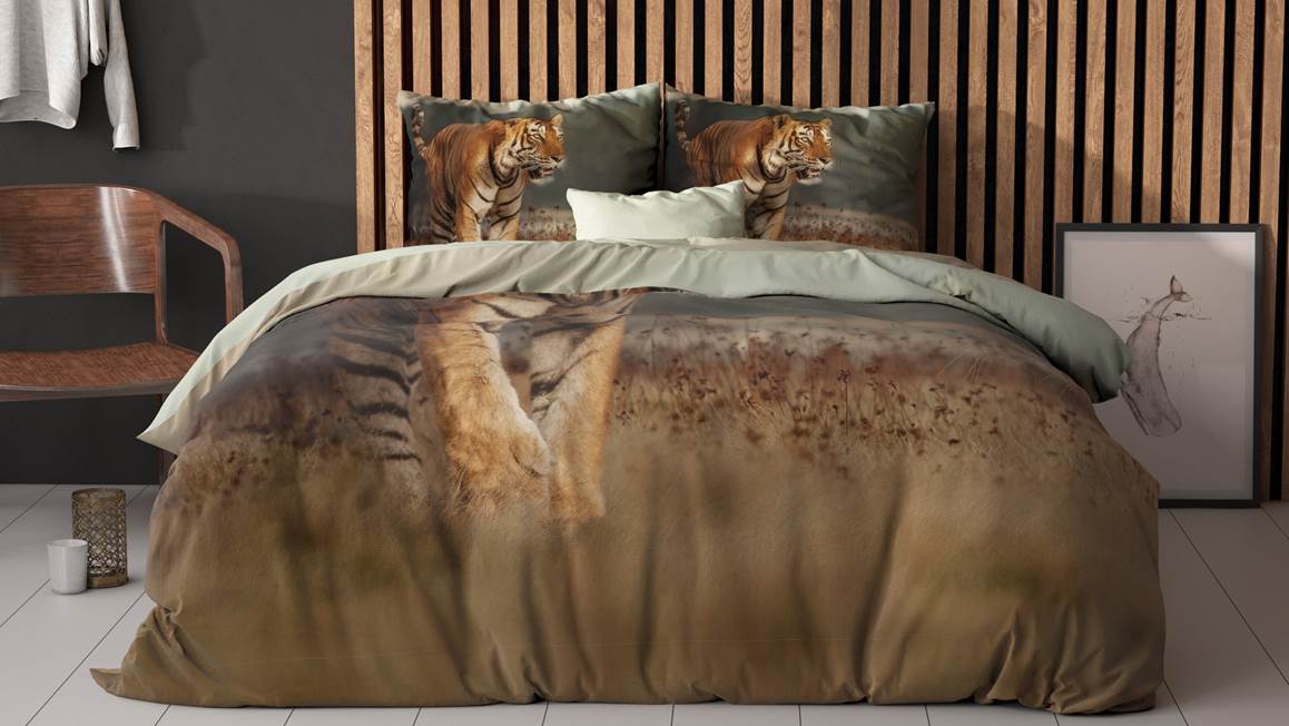 Leg een echte eyecatcher op bed met het Sleeptime Nature Tiger dekbedovertrek. Op het overtrek zie je een tijger door de Savanne lopen. Het wilde dier trekt direct je aandacht. Sla de effen achterzijde een stukje open en de stijlvolle look is compleet!