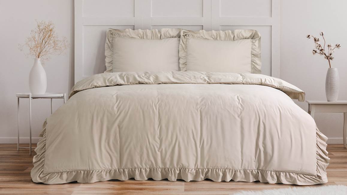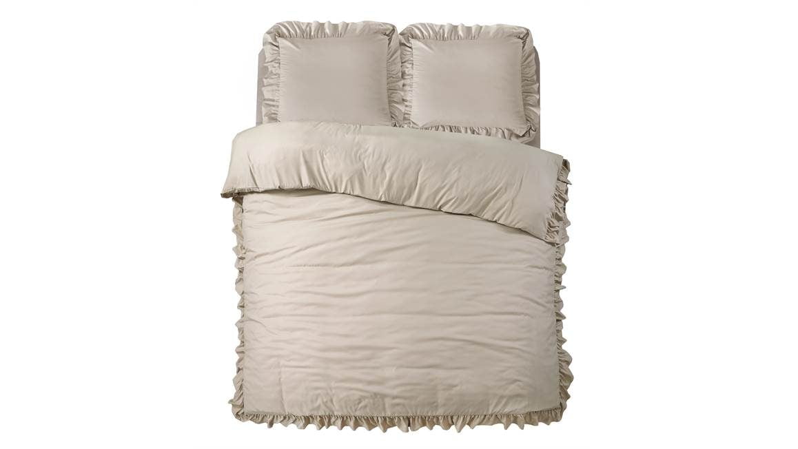Geef jouw slaapkamer een luxe uitstraling met het Ruffles dekbedovertrek van het merk Sleeptime. Het taupekleurige dessin creëert eenvoudig een warme sfeer in de slaapkamer. Het overtrek is afgewerkt met een chique Oxfordrand.