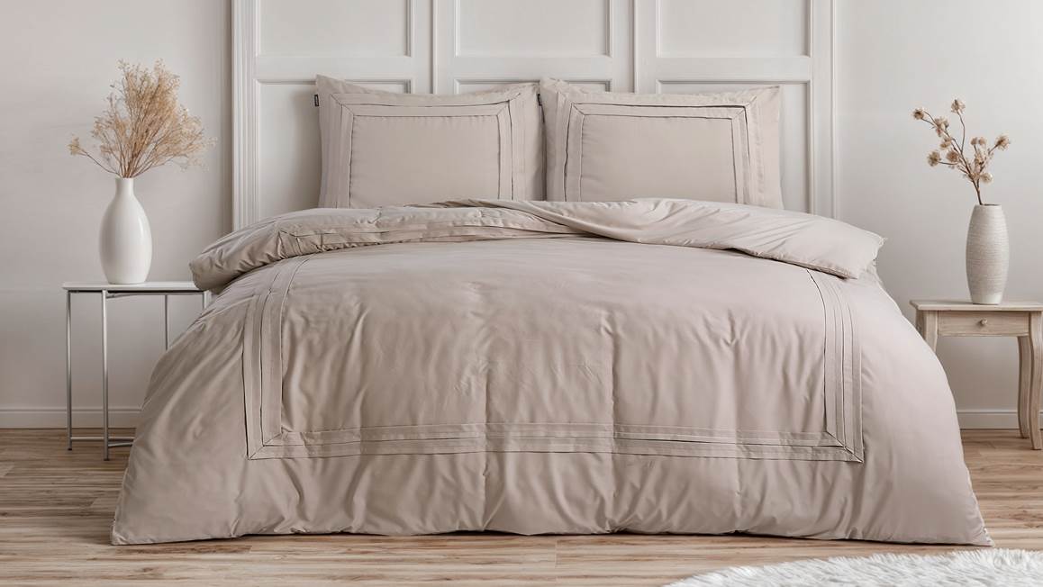 Creëer een warme sfeer in de slaapkamer met het Sleeptime Tailord dekbedovertrek. Het taupekleurige dessin bevat opgestikte stof die een chique touch geeft aan het overtrek. Zo geniet je iedere nacht van een heerlijke nachtrust.