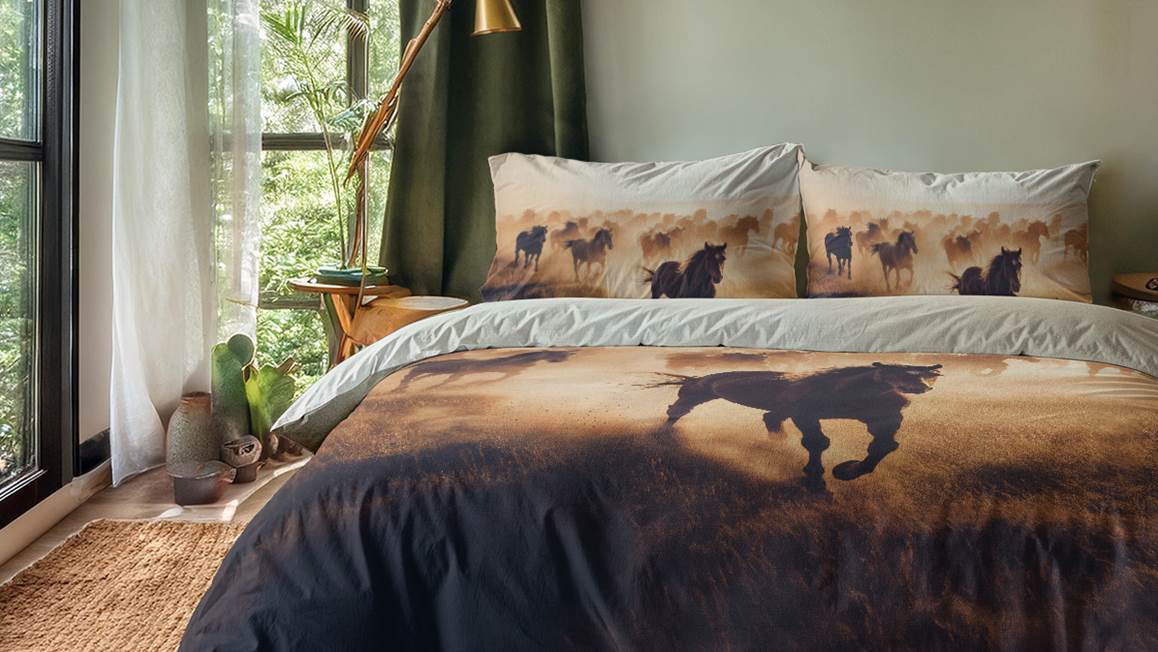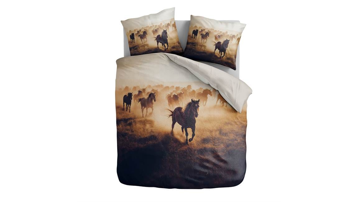 Het Zydante Terra Plains Horses dekbedovertrek heeft een mooie print van wild galopperende paarden op een weidse vlakte. Ben jij een liefhebber van paarden of spreekt deze stoere print jou wel aan? Dan is dit overtrek zeker iets voor op jouw bed. De warme, donkere kleuren zorgen voor sfeer. De achterzijde is effenkleurig en aan de onderzijde zitten handige drukknopen.