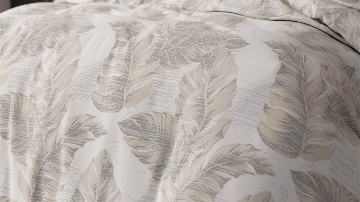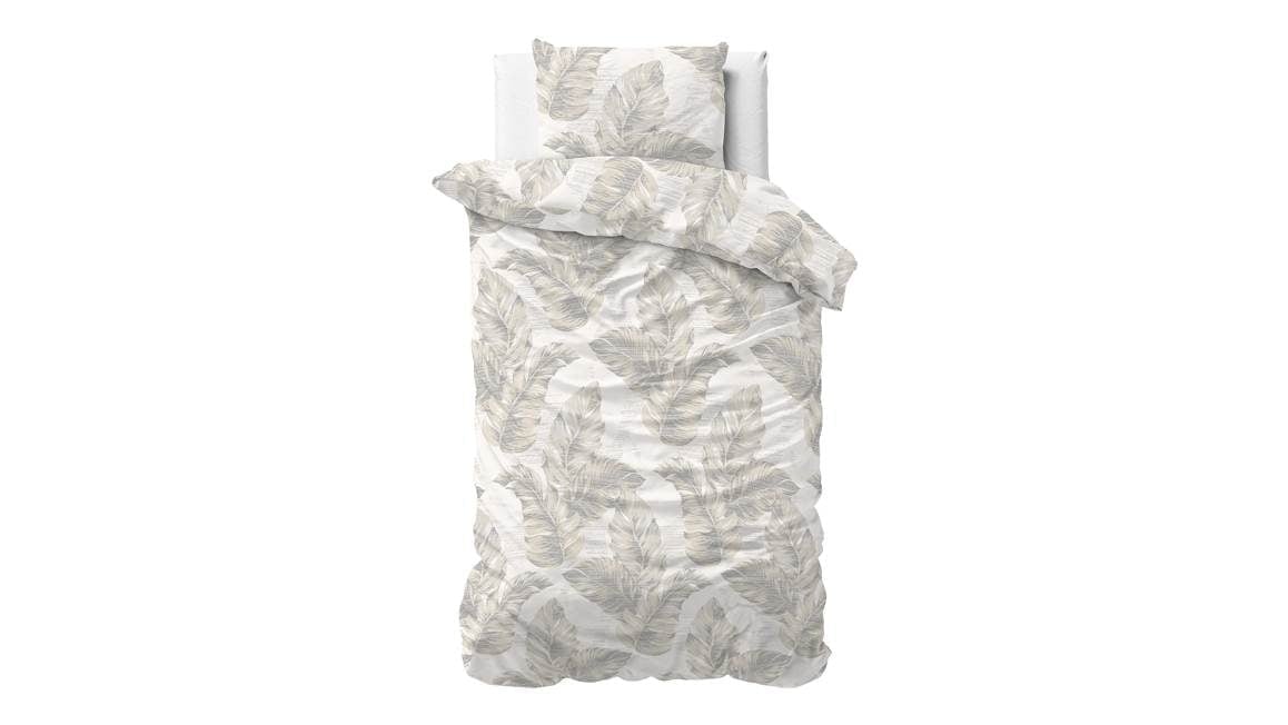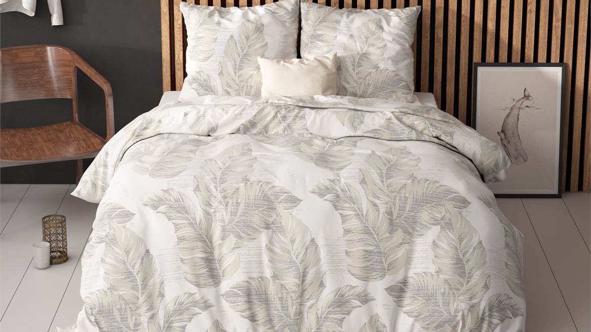 Het dekbedovertrek Afina bestaat uit een print vol grootste veren. Een luxe ogend geheel in zachte, maar eveneens warme tinten beige, zand en offwhite. Het dekbedovertrek sluit goed aan in de landelijke of romantische woonstijl.