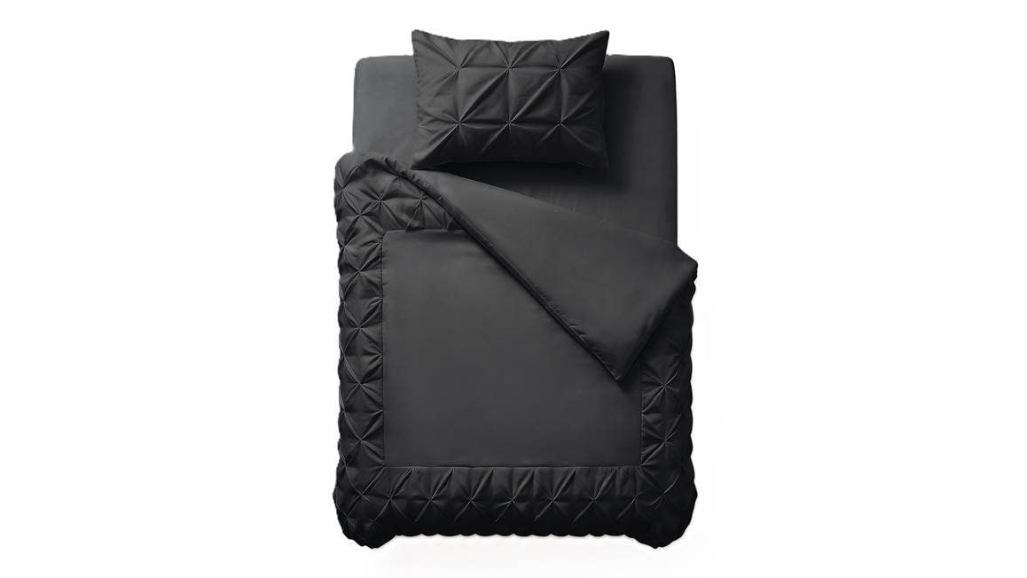 Geef jouw slaapkamer een boost met het Sleeptime Border Pintuck dekbedovertrek. De zwarte kleur is chique en past perfect in ieder interieur. Het overtrek heeft een rand van pintuck plooien, waardoor het overtrek de perfecte balans tussen speels en luxe biedt.