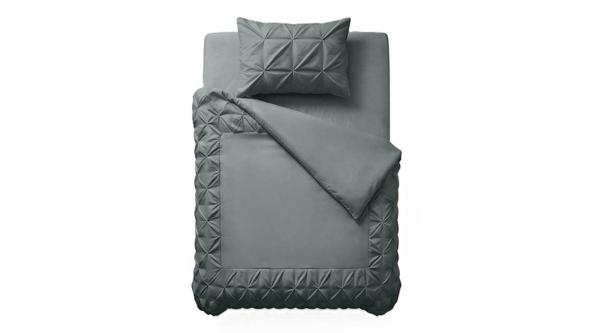 Voeg een vleugje extra kleur toe aan jouw slaapkamer met het groene Sleeptime Border Pintuck dekbedovertrek. Deze kleur helpt je om ontspannen in slaap te vallen. De geplooide rand zorgt voor een speels effect. Droom iedere avond heerlijk weg.