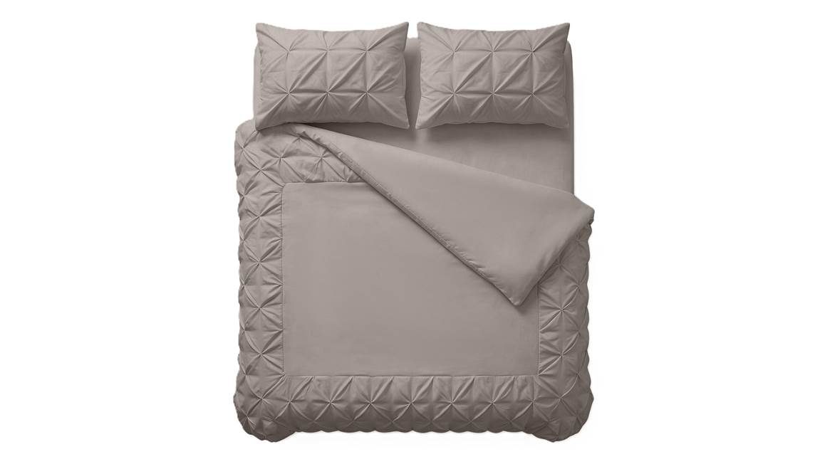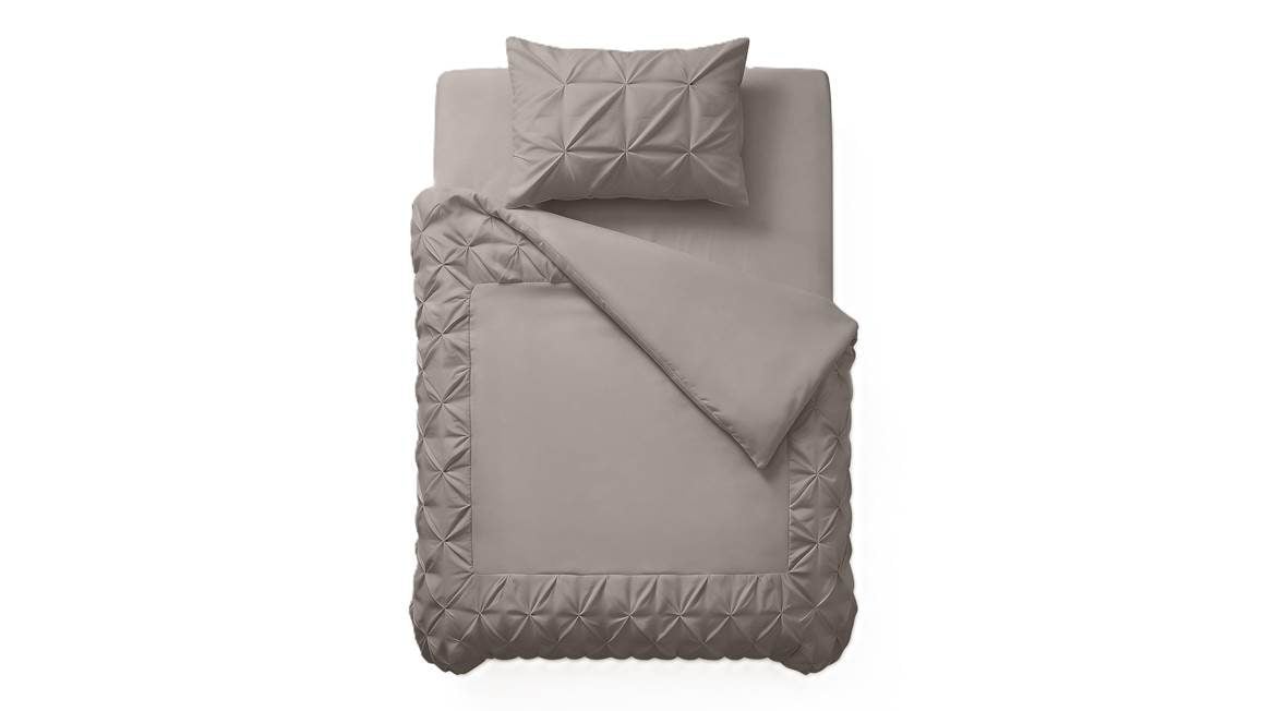 Trendy en luxe, dat is het Border Pintuck dekbedovertrek van het merk Sleeptime! Het overtrek is voorzien van een rand die pintuck geweven is, waardoor diverse plooien mooi samen komen. De taupe kleur heeft grijze gloed, waardoor je je eigen ontspannen hotelgevoel zo in huis haalt. Droom iedere avond heerlijk weg!