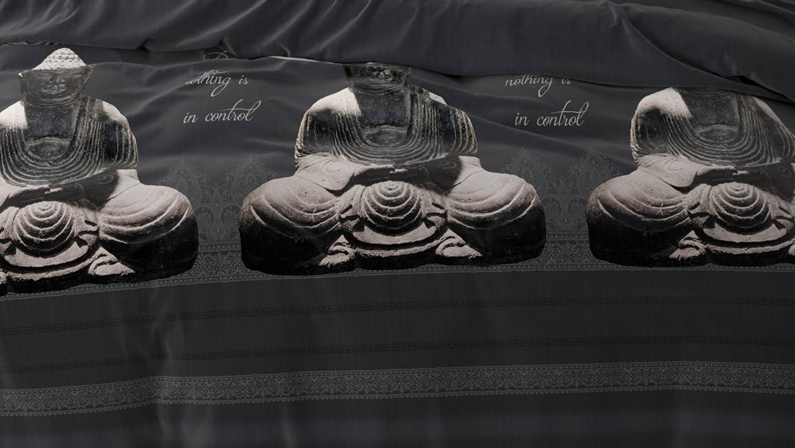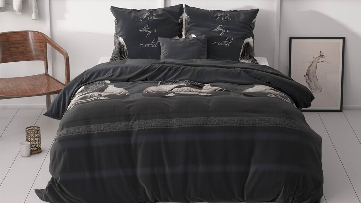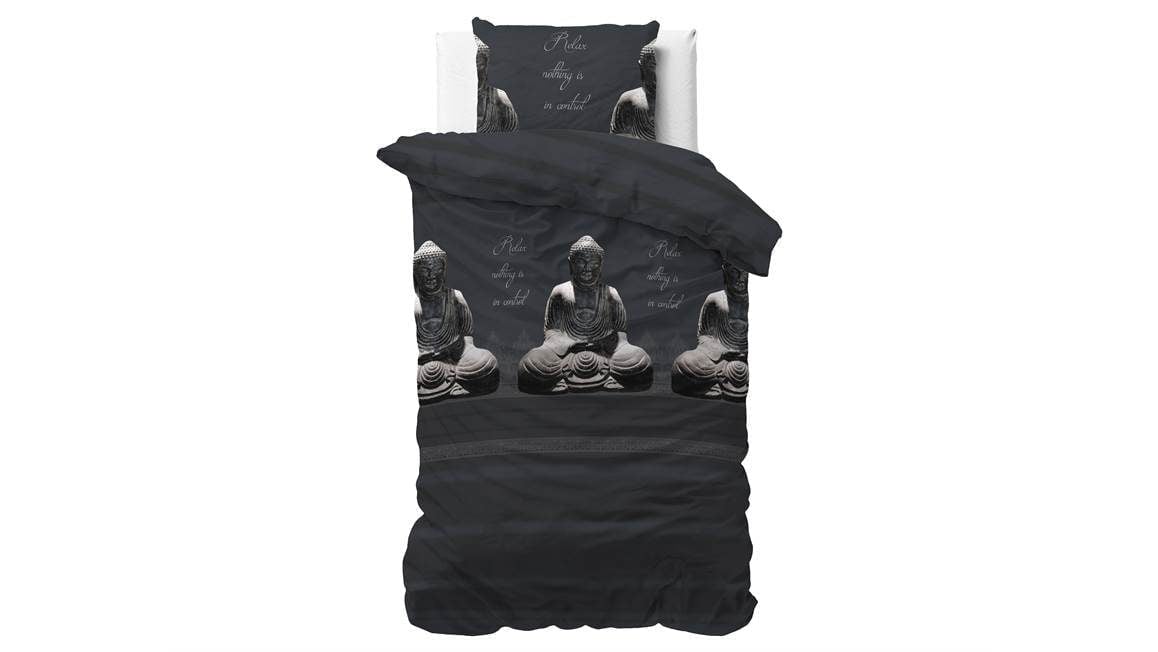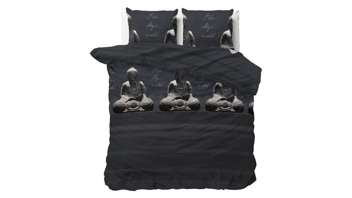 Kom helemaal tot rust met het Buddha dekbedovertrek van het merk Sleeptime. Het zwartkleurige dessin heeft een print van meerdere Buddha’s. Zo sta je iedere dag met een ontspannen gevoel op.