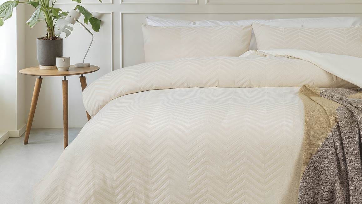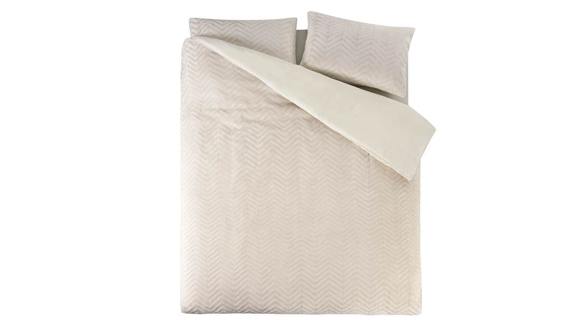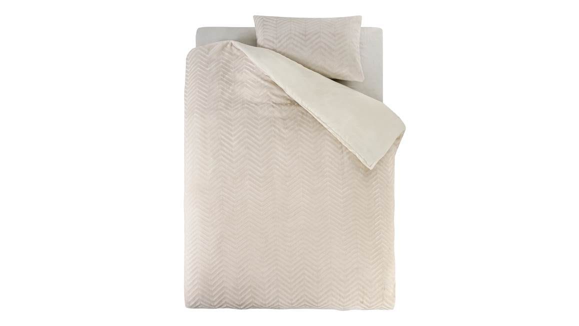 Droom weg onder het crèmekleurige Chevron Teddy dekbedovertrek van het merk Sleeptime. De zachte tint oogt rustgevend, zodat je ontspannen in slaap kunt vallen. De voorkant, gemaakt van heerlijk zacht teddy stof, bevat een trendy visgraatpatroon.