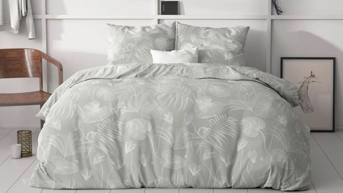 Trendy en fris, dat is het Sleeptime Delight dekbedovertrek! Het grijzige dekbedovertrek bevat een print van witte bladeren. Het ontwerp oogt hierdoor zomers en fris. Je matcht het eenvoudig in iedere slaapkamer.