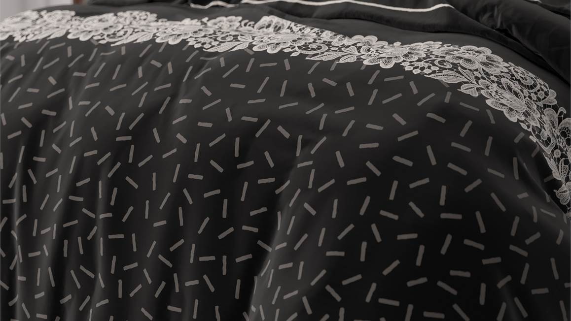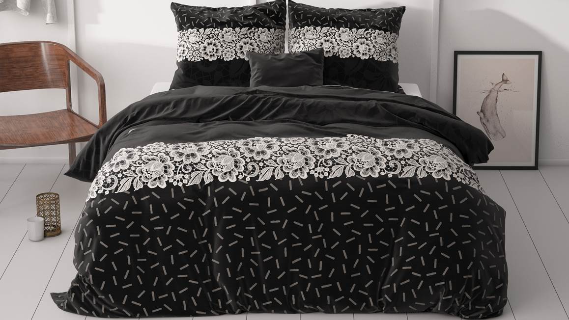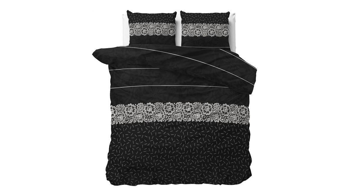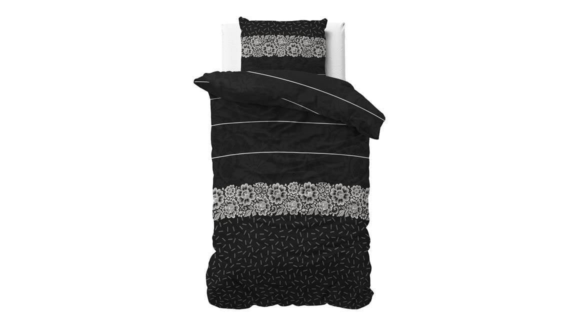 Laat je betoveren door het Sleeptime Dervio dekbedovertrek. De banen van dit overtrek zijn subtiel versierd met een mix van diverse prints. Vooral de prachtige witte bloemen vormen een opvallend contrast tegen de diep zwarte achtergrond.