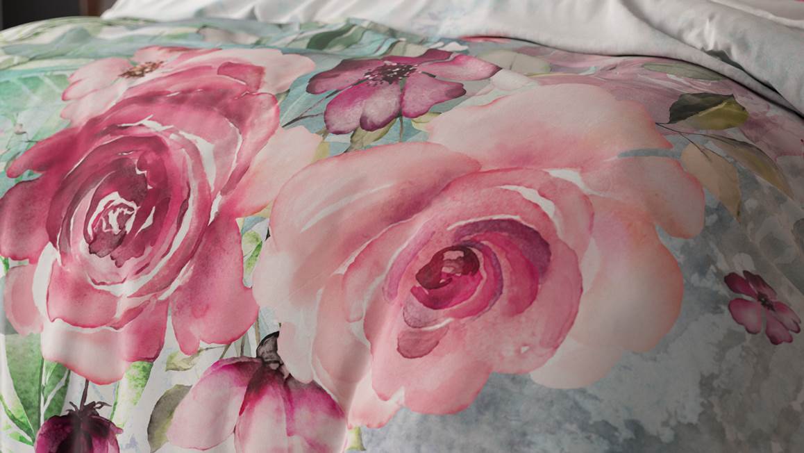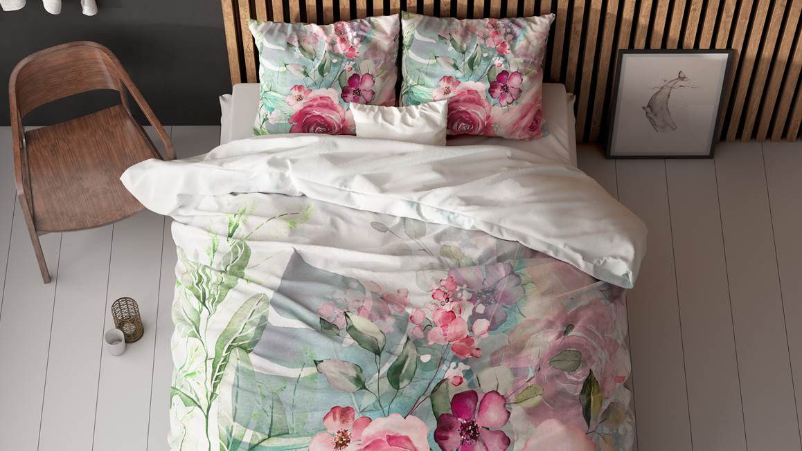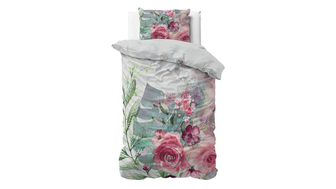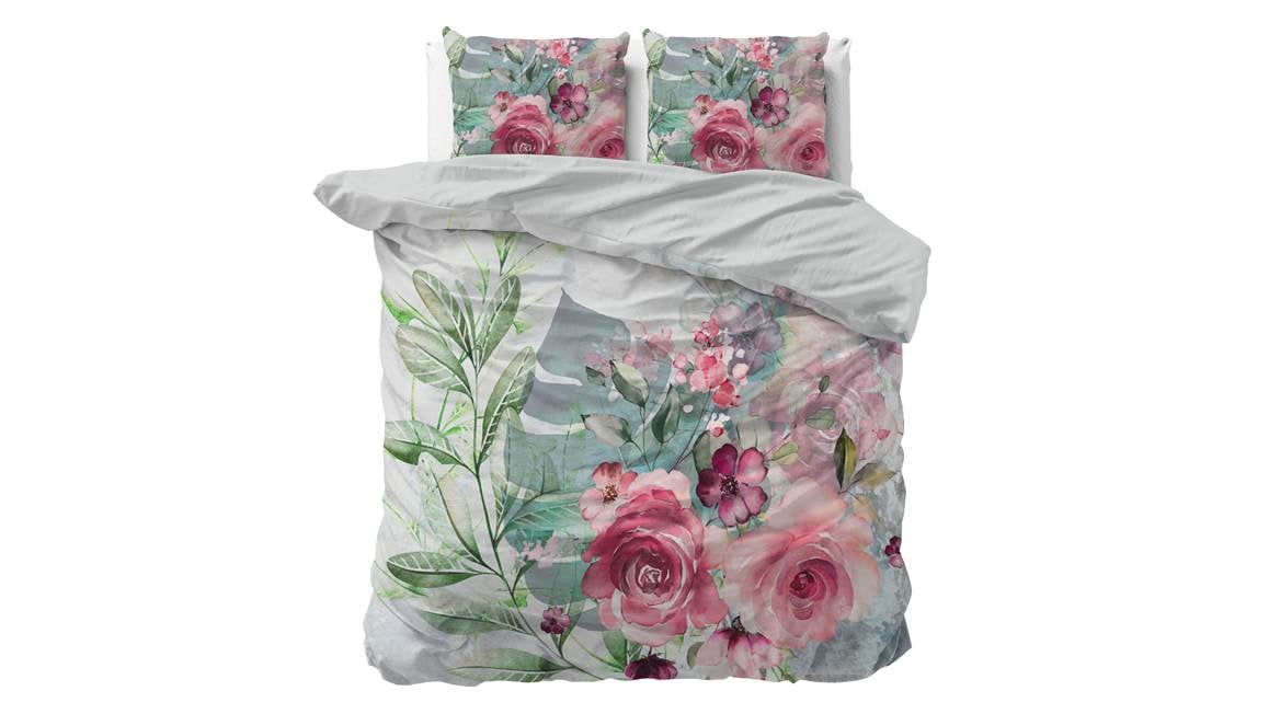 Creëer een romantische look en feel in de slaapkamer met het Sleeptime Desire dekbedovertrek. Prachtige grote rozen met verschillende groentinten laten het ontwerp stralen. Met de effen achterzijde creëer je een luxe omslag om het plaatje compleet te maken.