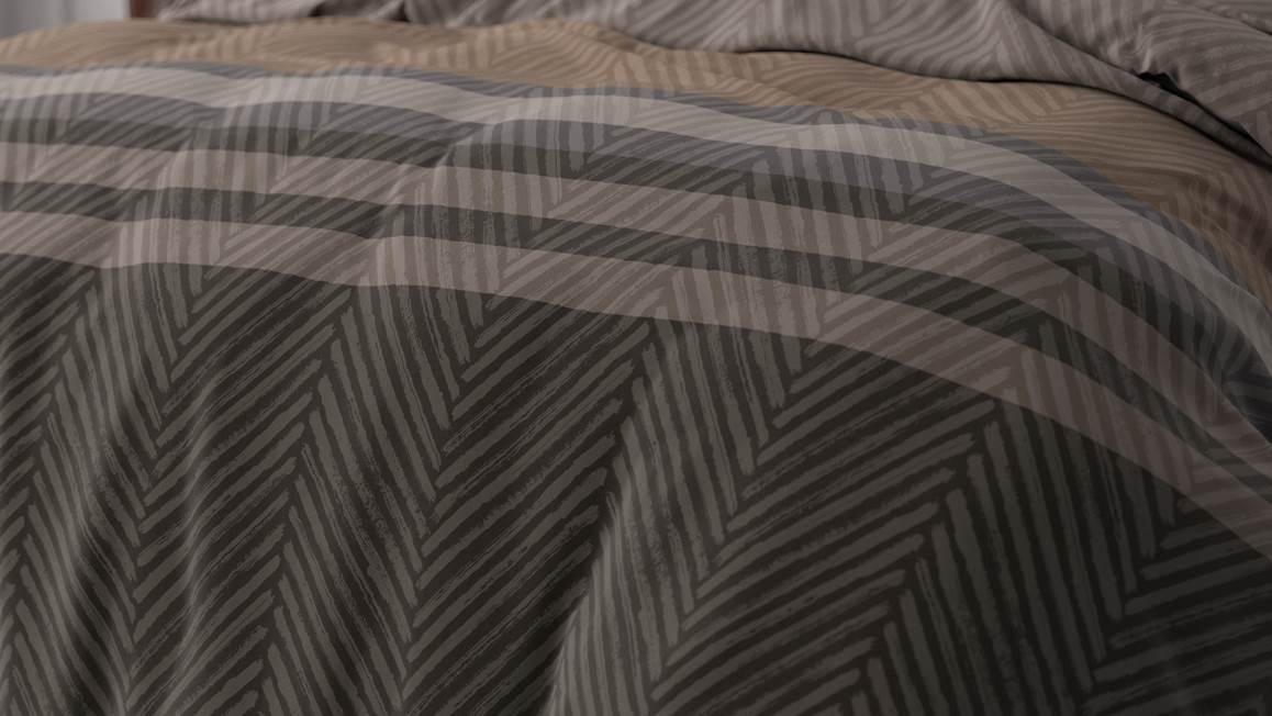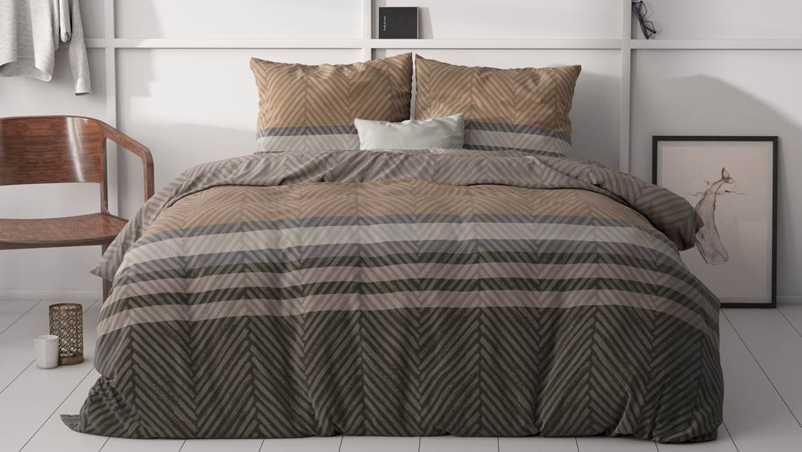 Het Sleeptime Ezgi dekbedovertrek laat je iedere avond heerlijk in slaap vallen. Een grafische vissengraatprint is opgedeeld in een tijdloze banenprint. De aardetinten ogen erg ontspannend en sfeervol.