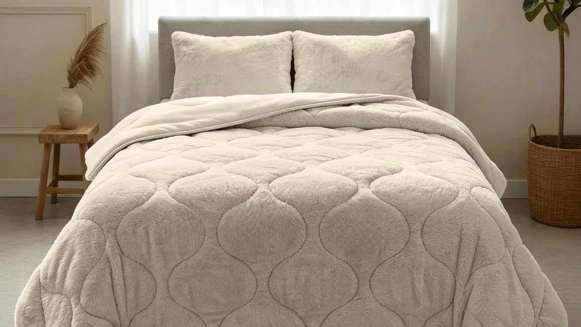 | Materiaal tijk | Voorkant: 100% polyester teddy, achterkant: 100% microvezel |