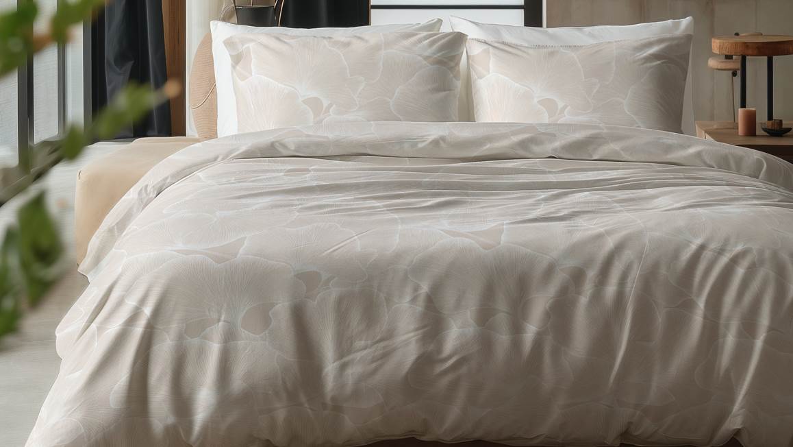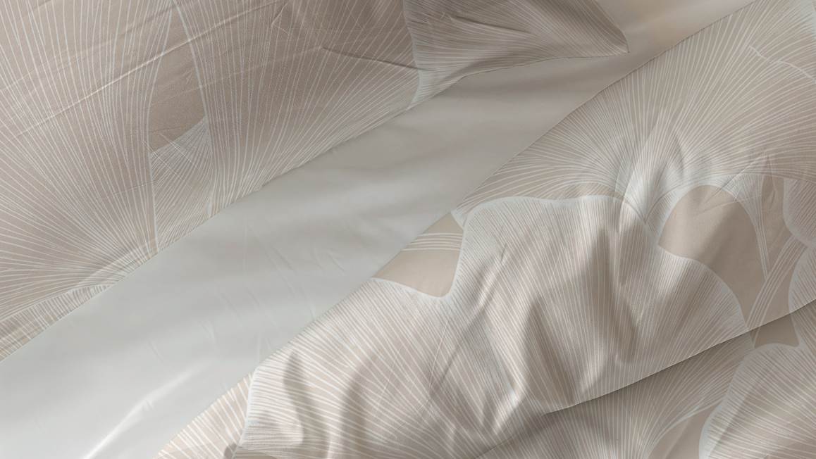 Val iedere avond heerlijk ontspannen in slaap onder het Sleeptime Ginkgo Whisper dekebedovertrek. Het zandkleurige dessin bevat een print van grote Ginkgobladeren, zodat er rust wordt gecreëerd in jouw interieur.