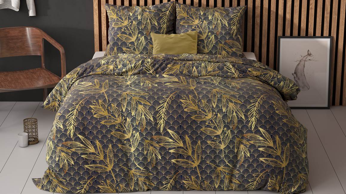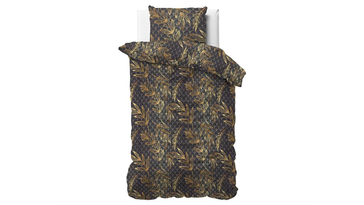 Het Sleeptime Gold Rush dekbedovertrek heeft een mooie, donkergekleurde print met goudkleurige details. De print bestaat zowel uit een grafisch patroon als een all-over bladerenprint. Het Gold Rush dekbedovertrek sluit perfect aan bij een wereldse woonstijl. De stof is heerlijk zacht en ademend, een prettig materiaal voor een comfortabele nachtrust.