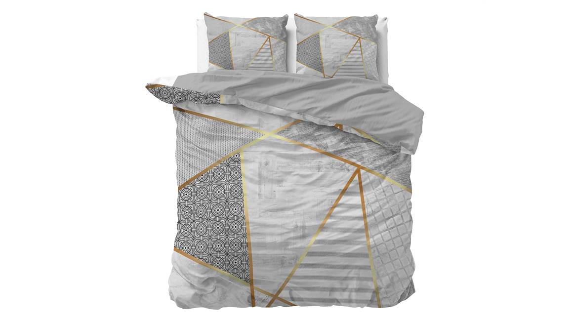 Chique, stijlvol en luxueus: dat is het mooie Graphic dekbedovertrek van Sleeptime! Deze unieke print bestaat uit verschillende lichte patronen. Ze zijn van elkaar gescheiden door goudkleurige lijnen. Een echte eyecatcher dus!