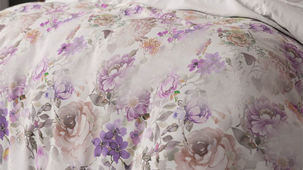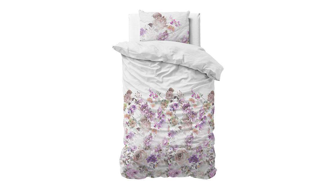 Haal de romantische woonstijl naar de slaapkamer met het Jenice dekbedovertrek. Een overwegend wit dekbedovertrek met prachtige roze en paars gekleurde rozen. Een boeket bloemen op bed, wie wil dat nu niet?