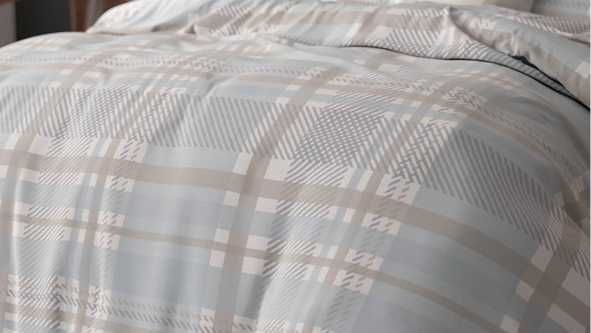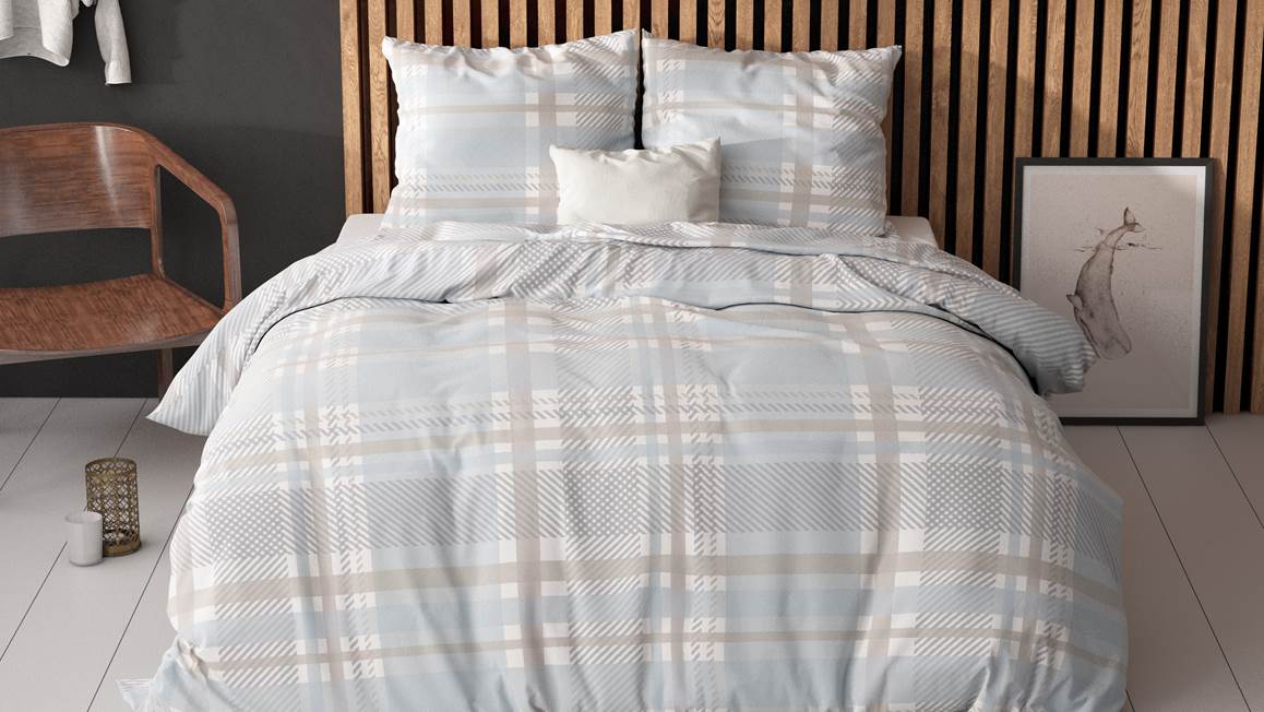 Het Sleeptime Lilou dekbedovertrek heeft een klassiek ruitpatroon in een lichtblauwe kleur, afgewisseld met grijs en taupe. Een mooie toevoeging aan je landelijke slaapkamerinterieur.