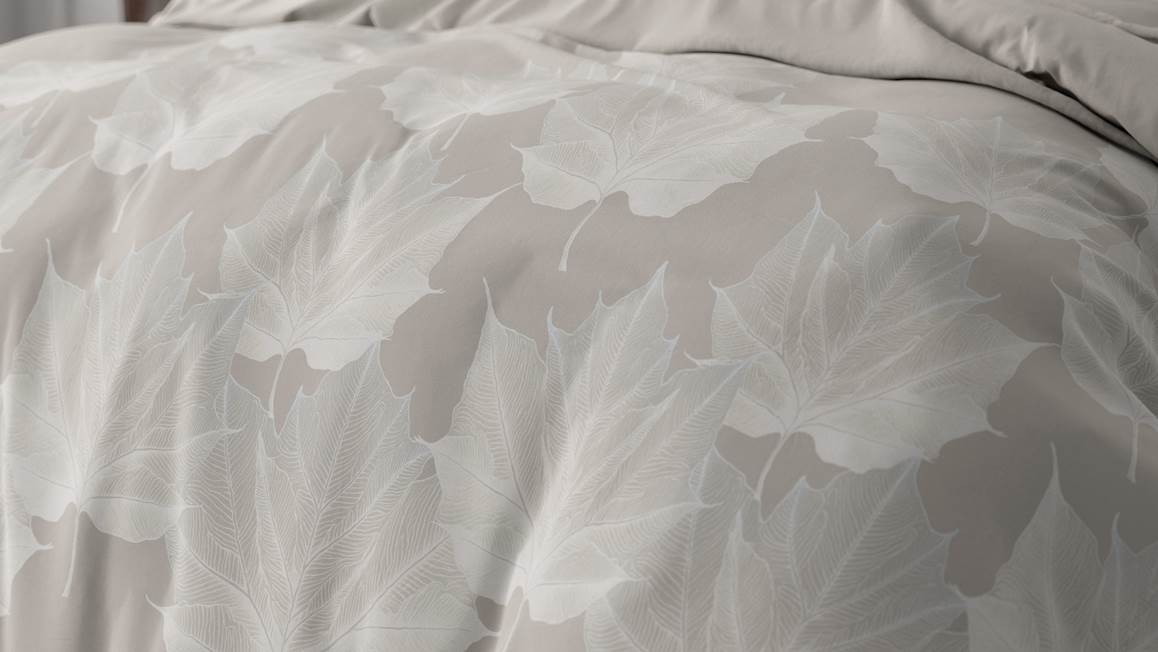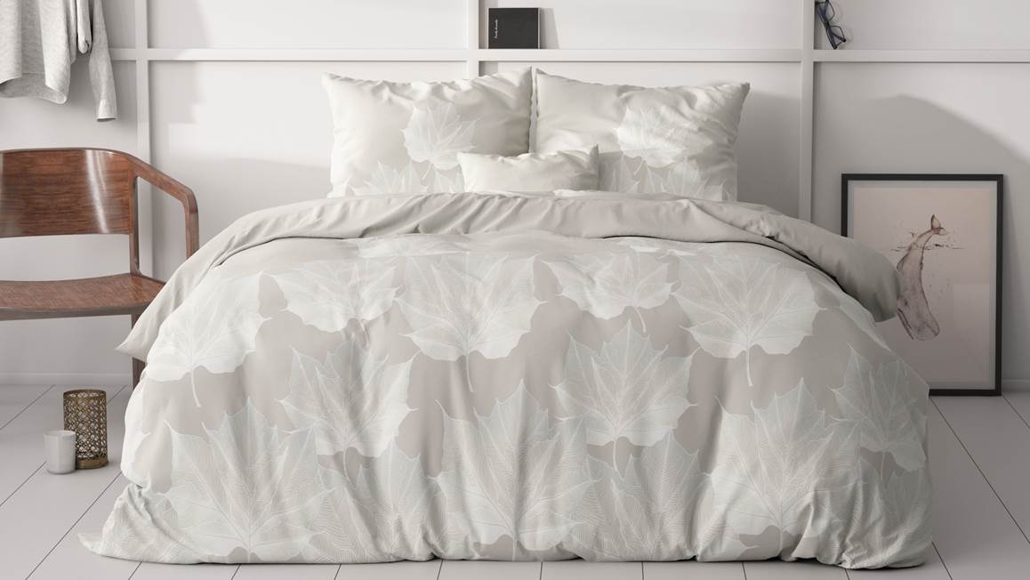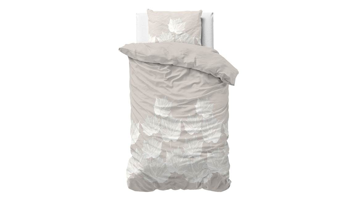 Creëer een oase aan rust met het Sleeptime Lisa dekbedovertrek. Grote bladeren in zachte tinten komen mooi uit op de zandkleurige ondergrond. De achterzijde is effen, zodat je een luxe omslag kunt maken.