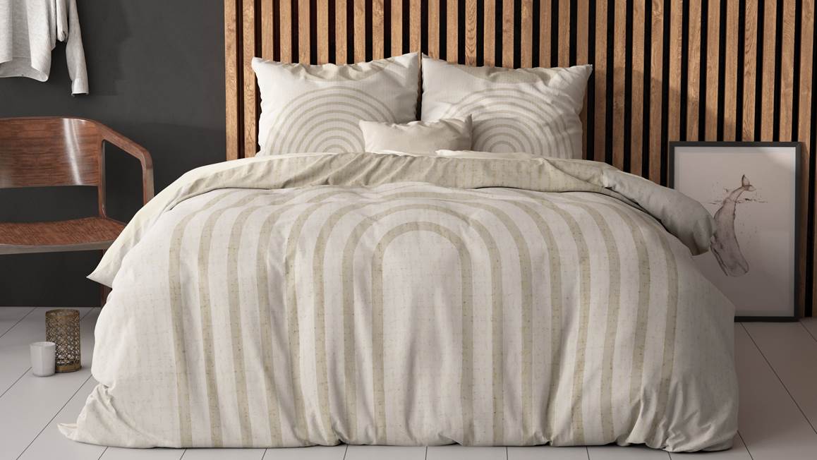 Val iedere avond heerlijk ontspannen in slaap onder het Sleeptime Lobna dekbedovertrek. De print bestaat uit een grote print van ronde bogen die wel wat weg hebben van de Japandi stijl. Zo geef je jouw moderne slaapkamer een trendy uitstraling.
