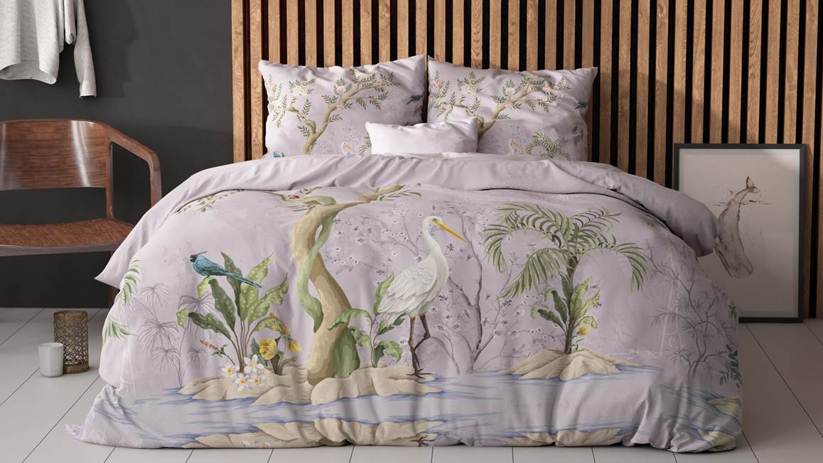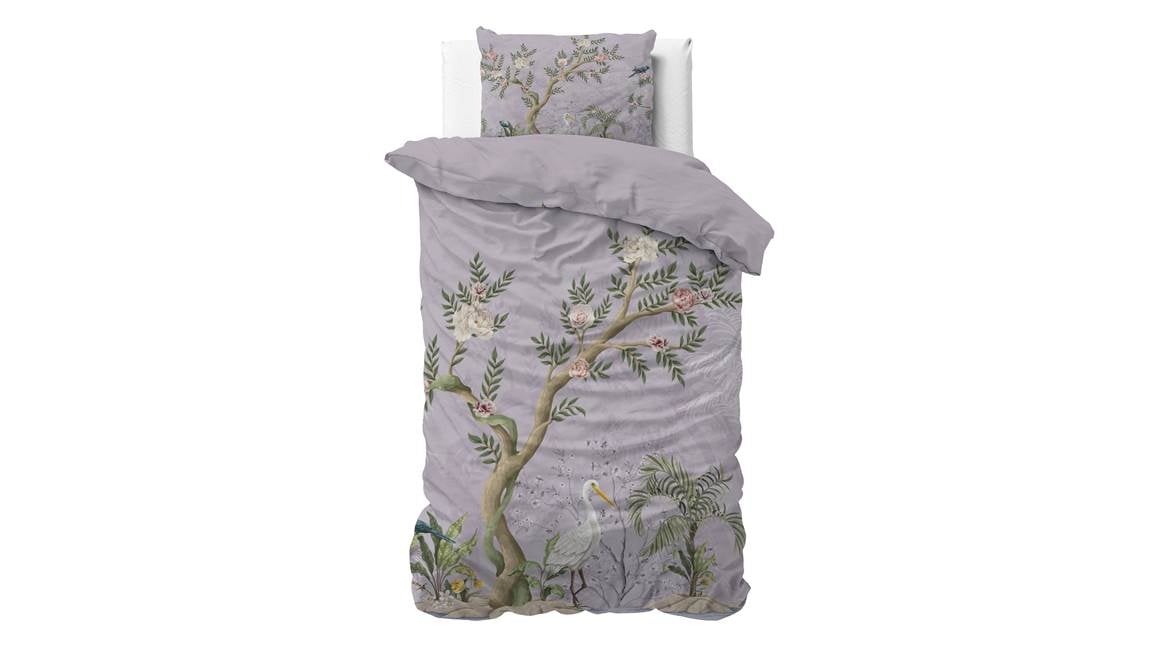 Wil jij graag een eyecatcher op bed hebben liggen? Dan is het Lois dekbedovertrek van het bekende merk Sleeptime een echt must-have. Op het paarse dessin staat een landschap afgebeeld van bomen met hier en daar een vogel. Zo haal je ook nog eens de natuur in huis!