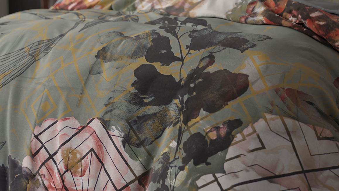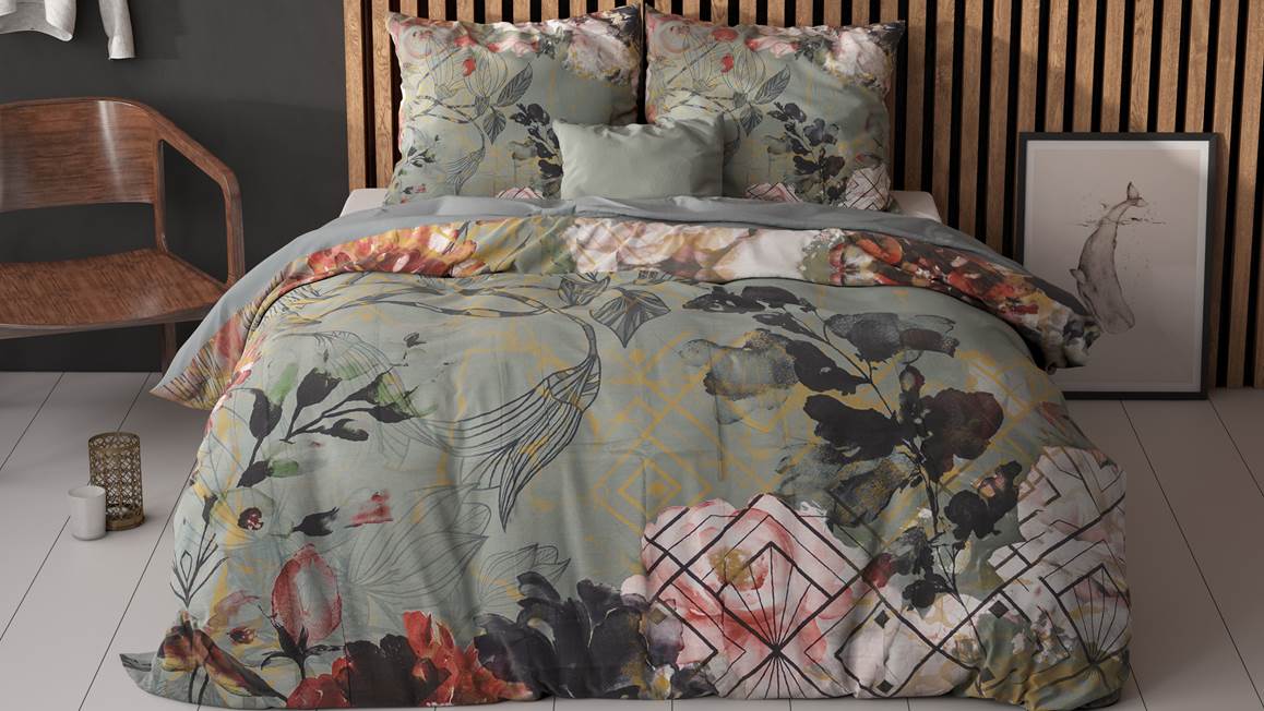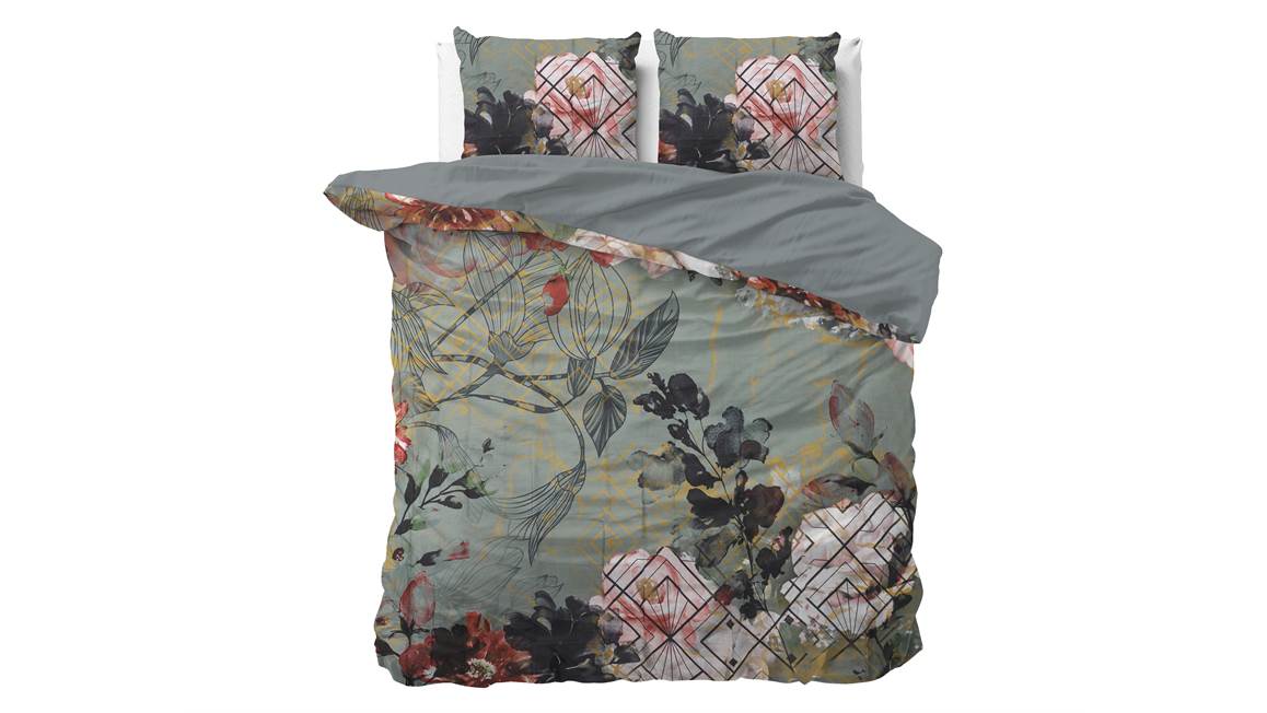 Het Sleeptime Marble Art Deco dekbedovertrek is erg stijlvol. Het groene dessin bevat een print van verschillende soorten bladeren. De achterzijde van het overtrek is effen van kleur.