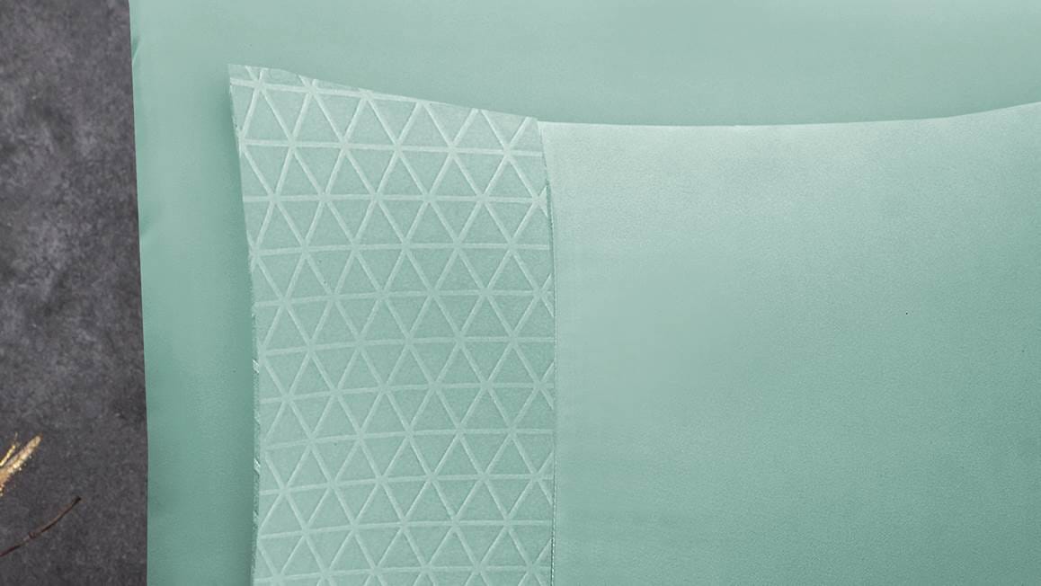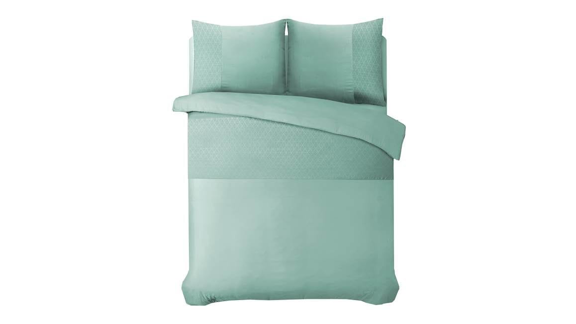 Voeg een vleugje extra kleur toe aan jouw interieur met het Monte Negro dekbedovertrek van het merk Sleeptime. De mintgroene tint oogt erg vrolijk en haalt eenvoudig de lente in huis. Zowel de kussenslopen en het overtrek zijn voorzien van een geometrische band.