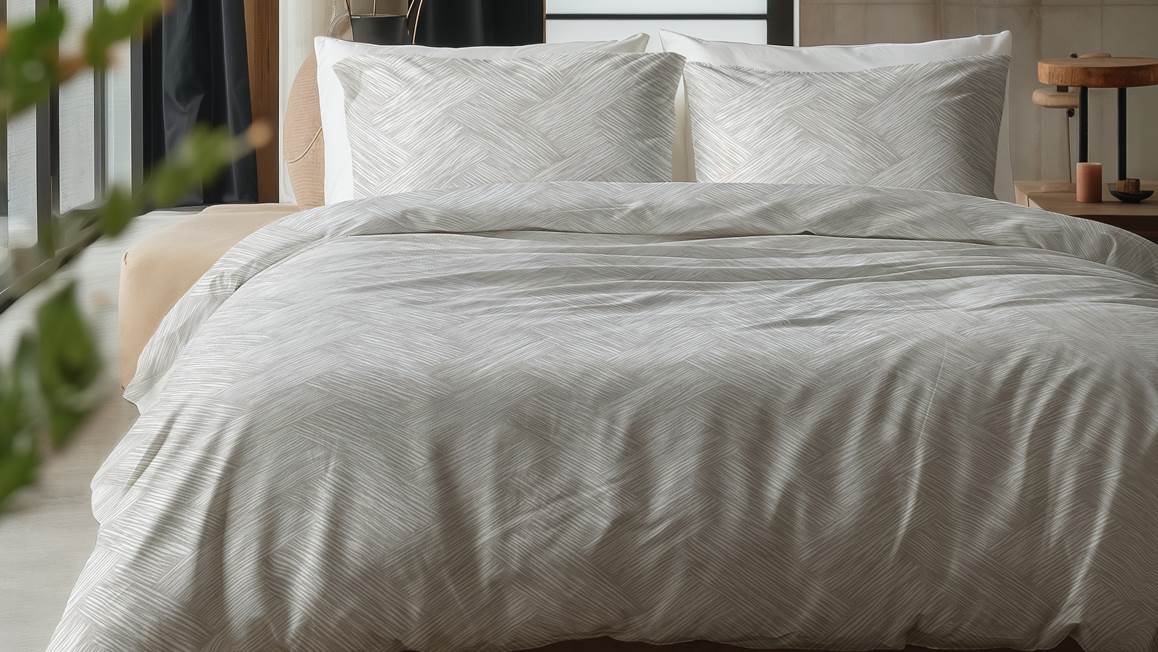 Geef jouw slaapkamer een frisse uitstraling met het Sleeptime Rattan dekbedovertrek. Het witte overtrek is voorzien van een grafische print bestaande uit allerlei grijze strepen. Het ontwerp oogt hierdoor speels en trendy, zodat jouw slaapkamer een echte boost krijgt!