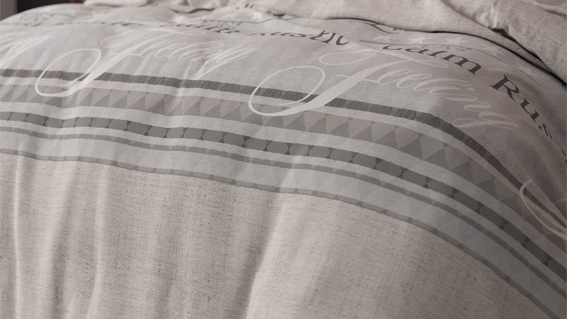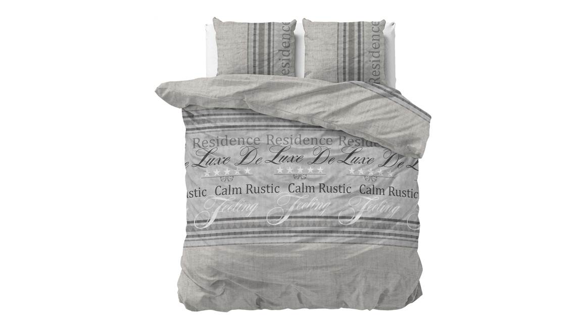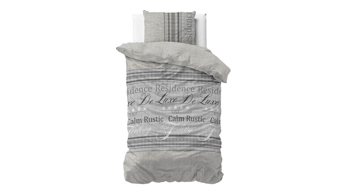 Met het Residence dekbedovertrek tover je de slaapkamer om tot een luxe hotelsuite. Het grijs gekleurde dessin is voorzien van verschillende teksten, een mooi dekbedovertrek waar je prinsheerlijk onder slaapt.