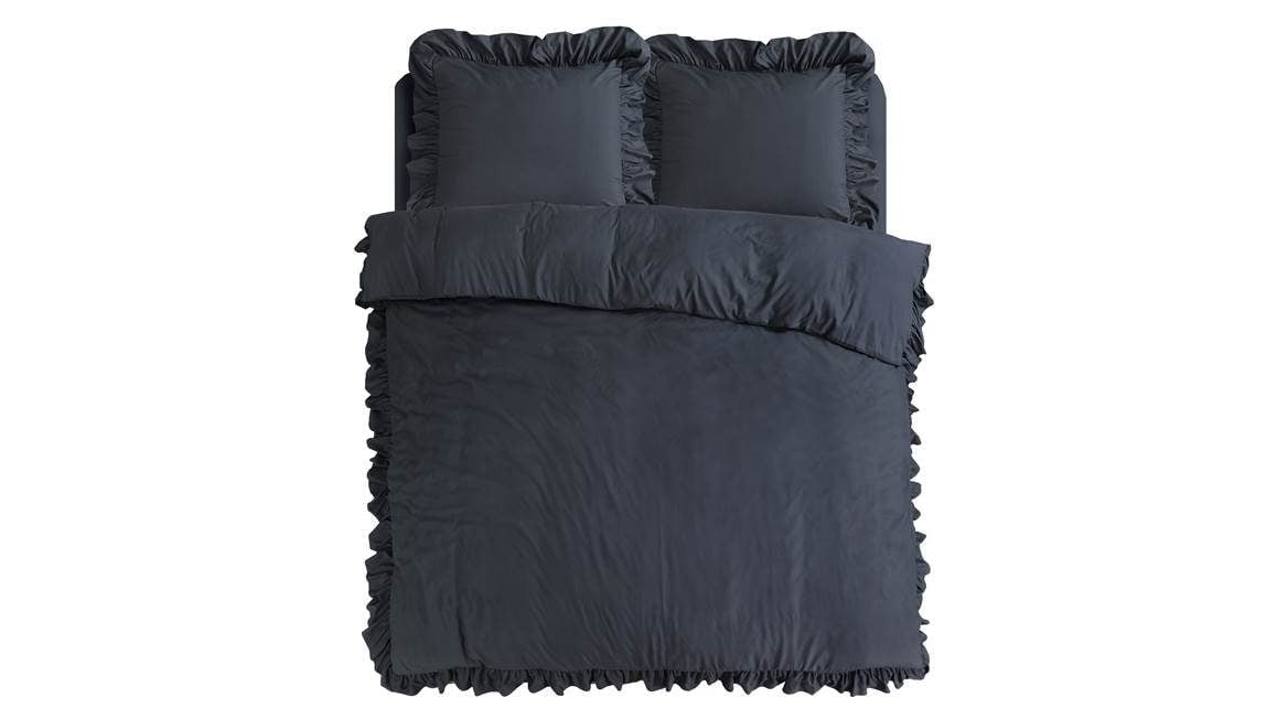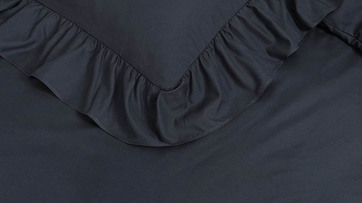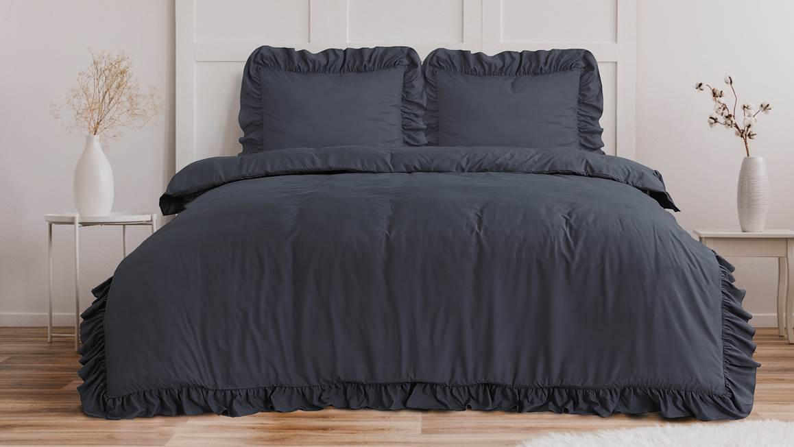 Het Sleeptime Ruffles dekbedovertrek bevat een trendy antraciet kleur. Het overtrek en de kussenslopen zijn rondom voorzien van een luxe Oxfordrand. Je combineert het dessin eenvoudige in een moderne of industriële slaapkamer.