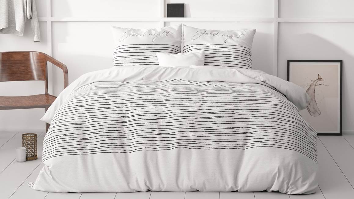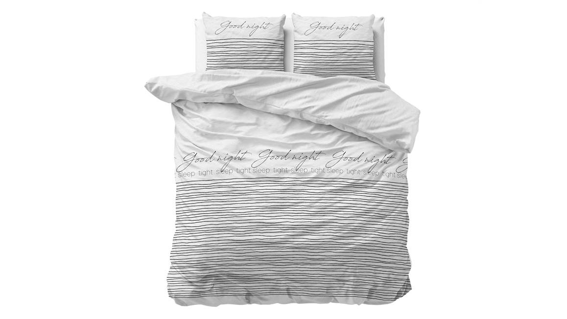 Onder het Sleeptime Sleeptight 2 dekbedovertrek is een heerlijk nachtrust gegarandeerd. De speelse zwarte lijnen worden ondersteund met de tekst “Goodnight” en “Sleep tight”. Door alleen te kiezen voor zwart en wit is het geheel erg rustgevend en droom je zo weg.